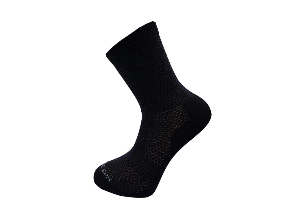 AIR LITE SOX jsou letní vysoké ponožky s výrazným odlehčením ve formě ventilační síťky určené zejména na běh. Prémiové materiály z Itálie, Německa a ČR společně s precizním provedením zaručují vysokou kvalitu a vynikající užitné vlastnosti. Součástí konstrukce je zesílení Achilovky, paty, chodidla a špice proti oděru. Dobrá posazení na noze zajišťuje vysoký elastický lem a pružný pásek v chodidle. Uzavření špice je samozřejmě pomocí plochého švu. AIR LITE SOX je tenká, avšak díky různým typům zesílení překvapivě odolná ponožka, která při použití nejen elegantně a zajímavě vypadá, ale také dobře plní svůj účel.
