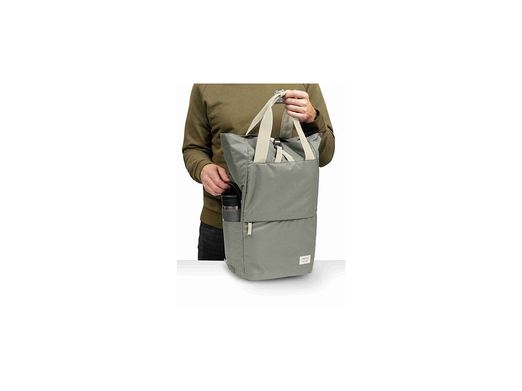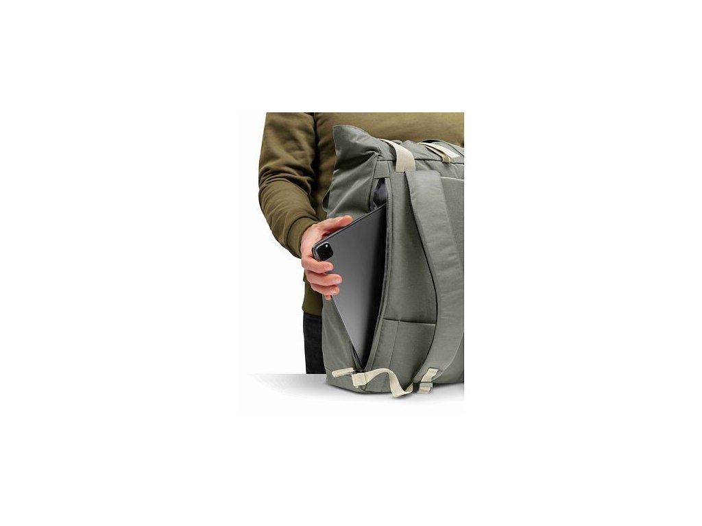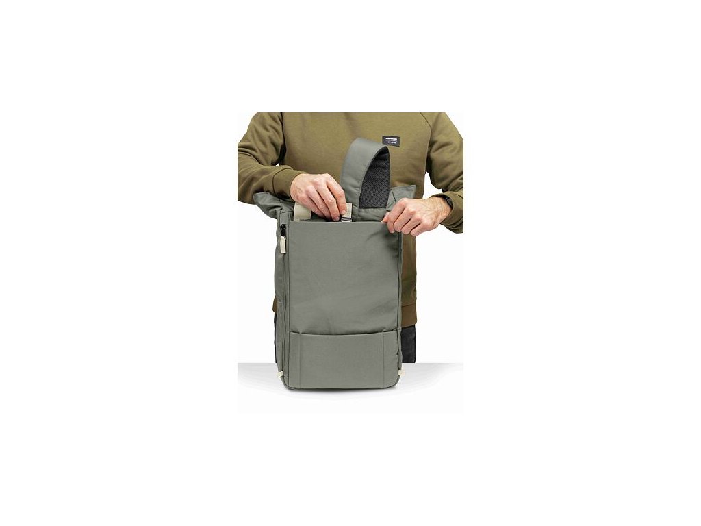 Díky sbalitelným polstrovaným ramenním popruhům a dvěma uchům lze batoh pohodlně nosit jako tašku i klasicky na zádech.