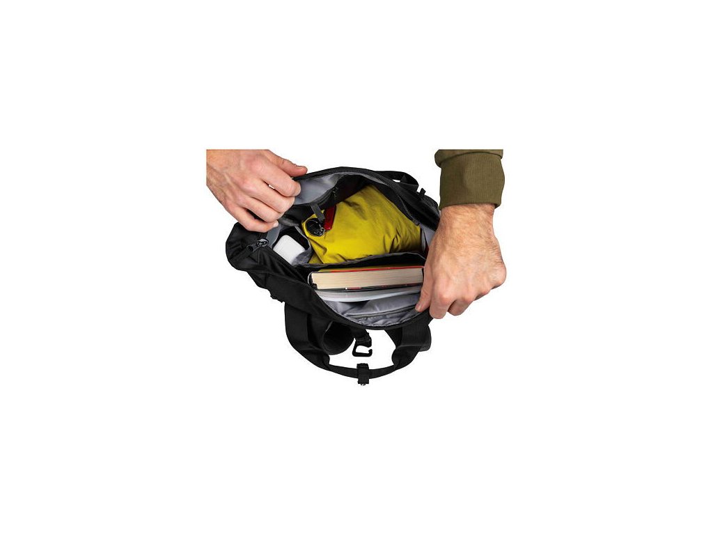 Batoh nabízí prostornou hlavní komoru s přístupem přes vrchní zip a praktické boční kapsy pro rychlý přístup k lahvi nebo drobnostem. Nechybí ani polstrovaná kapsa na notebook až do velikosti 16", která je snadno přístupná díky bočnímu vstupu.