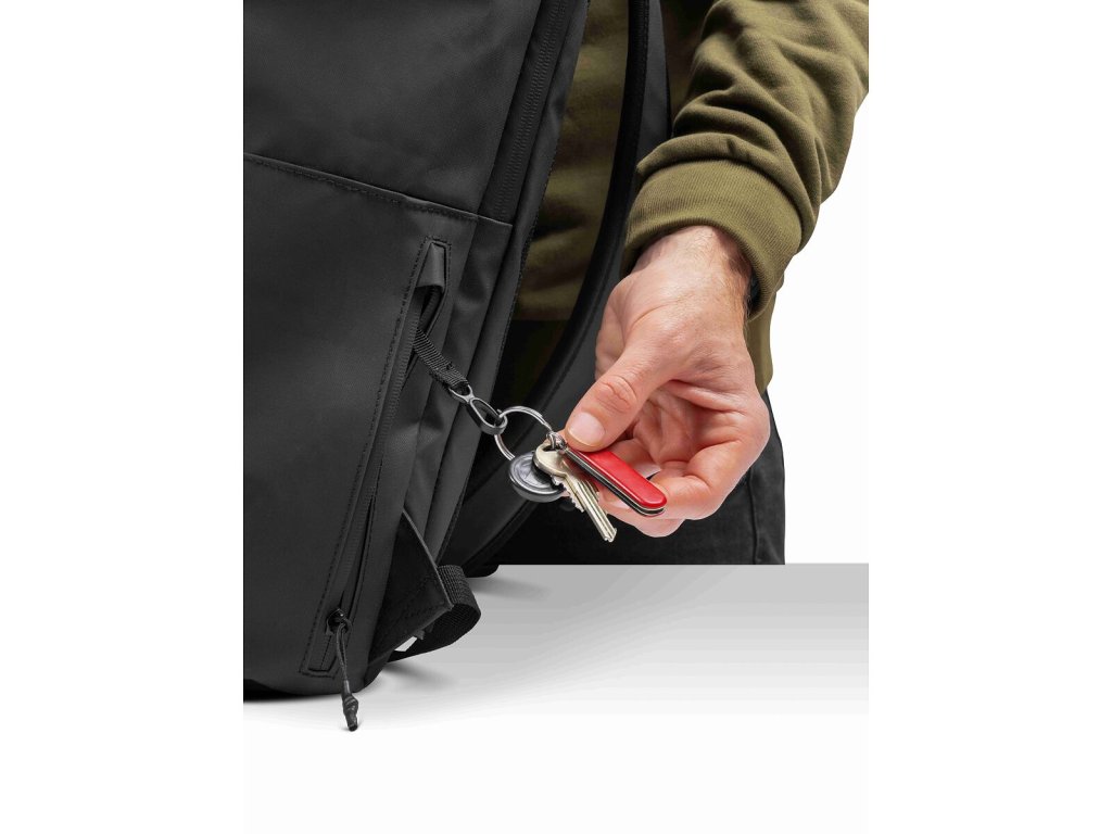 Vnitřní prostor batohu disponuje kapsou s organizérem a dvěma kapsami na boku. Pro cestování je batoh vybaven speciálním popruhem, který umožňuje snadné uchycení na držadlo kufru. Navíc jsou všechny zipy vodoodpudivé, což ochrání vaše věci před vlhkostí a deštěm.