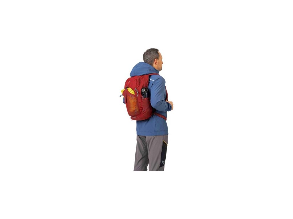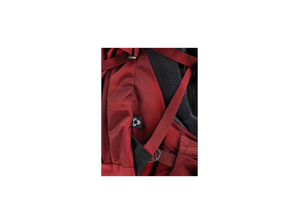 Na hrudním popruhu, kterým zajistíte stabilitu ramenních popruhů, najdete pohotovostní píšťalku. Nechybí úchyty na trekové hole, dvě boční kapsy a přední síťovaná kapsa mohou sloužit pro rychlé odložení částí oblečení či drobností.