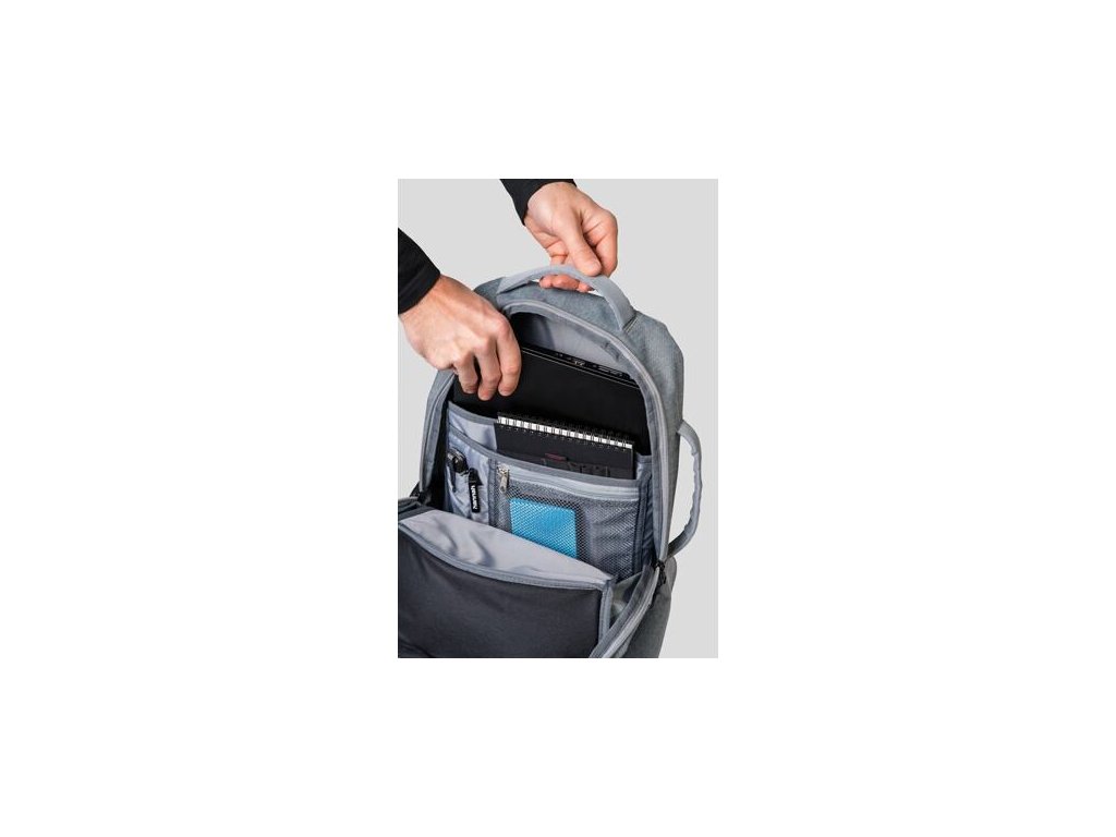 Ramenní popruhy můžete jednoduše zafixovat do protilehlé dolní části zad a díky bočnímu madlu lze batoh takto využít jako cestovní zavazadlo. Batoh má 2 vyztužené přední kapsy na zip, boční kapsu na zip a síťovanou boční kapsu na lahev. Hlavní prostor batohu má polstrovanou kapsu na notebook a organizér na drobnosti. Vhodný na denní nošení či cestování.