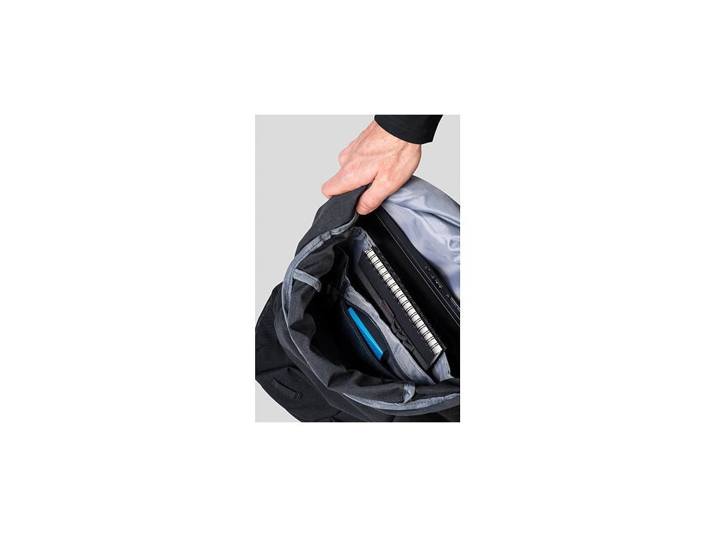V hlavním prostoru najdete polstrovanou přihrádku na notebook, kterou lze obsluhovat i přes boční vstup z vnějšku batohu. Batoh je vyroben z recyklovaného polyesteru (na výrobu jednoho kusu bylo zrecyklováno 11ks PET lahví o objemu 0,5l). Při výrobě tohoto produktu došlo tedy k významné úspoře energie a redukci uhlíkové stopy.