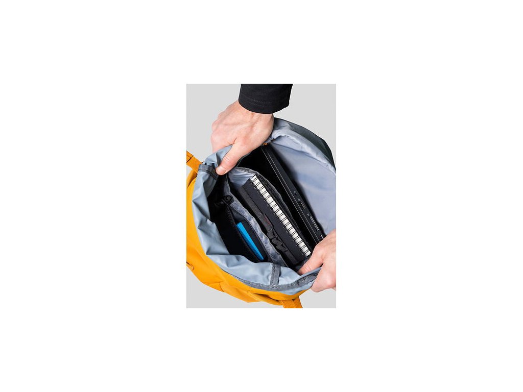 V hlavním prostoru najdete polstrovanou přihrádku na notebook, kterou lze obsluhovat i přes boční vstup z vnějšku batohu. Batoh je vyroben z recyklovaného polyesteru (na výrobu jednoho kusu bylo zrecyklováno 11ks PET lahví o objemu 0,5l). Při výrobě tohoto produktu došlo tedy k významné úspoře energie a redukci uhlíkové stopy.