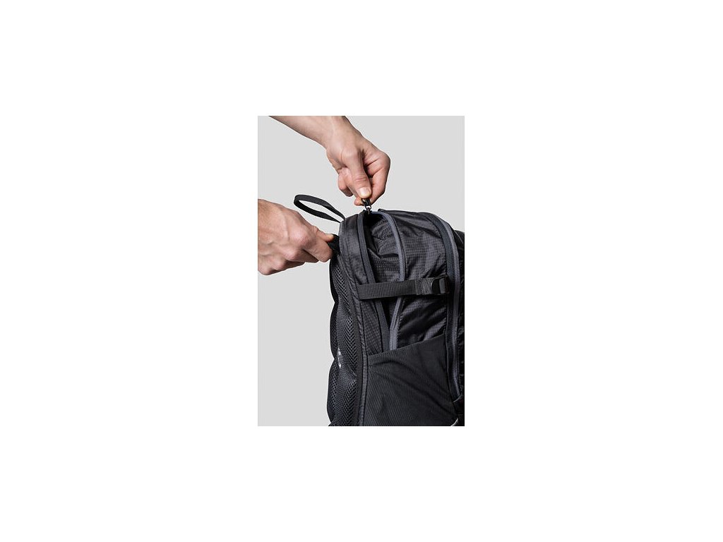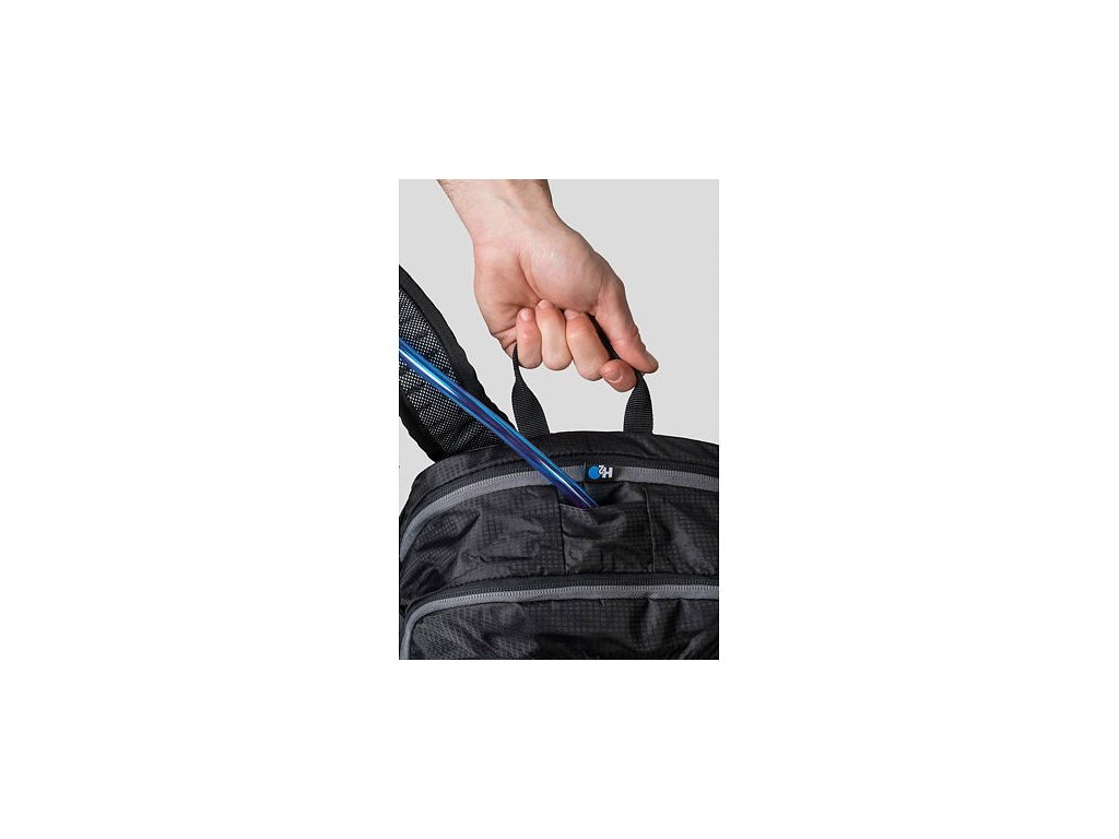 Cennosti naopak uschováte do přední či boční kapsy na zip. Batoh lze rozepnutím obvodového zipu objemově zvětšit o 3 litry. Součástí je integrovaná pláštěnka s reflexními prvky a 1l vodní vak, který je vložený do vnitřní kapsy s vývodem v horní části zad. Úchyt na blikačku a helmu oceníte během cyklovýletů.
