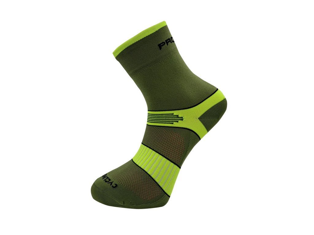 Cyklistické vysoké ponožky jsou vyrobeny z rychleschnoucího materiálu s perfektním odvodem vlhkosti. Kombinace vláken ClimaWell a CoolMax zajišťuje velmi dobrou regulaci a odvod par od povrchu těla a tím je pokožka udržována v suchu. Pletenina má zároveň velmi nízkou nasákavost a rychleji usychá. Úplet je velmi lehký, jemný a prodyšný. Materiál je odolný proti plísním a pachům a je nenáročný na údržbu.