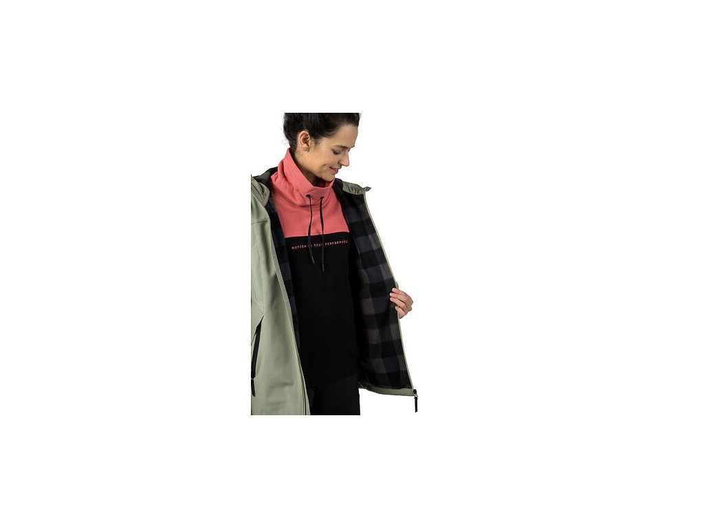 Tato dámská softshellová, volnočasová bunda Hannah Akame se hodí jak do města, tak i na lehčí trek. Akame je z materiálu Softshell s membránou 8 000 s DWR úpravou. Je lehká, větruvzdorná, ale zároveň prodyšná. Pohodlný střih Regular fit sedí většině typů postav, spodní okraj bundy je regulovatelný, stejně jako kapuce. Rukávy jsou anatomicky tvarované a zakončené rukávovou manžetou. Záda v teple zajistí prodloužená délka a fleecová podšívka. Bunda má dvě přední hlavní kapsy na zip.