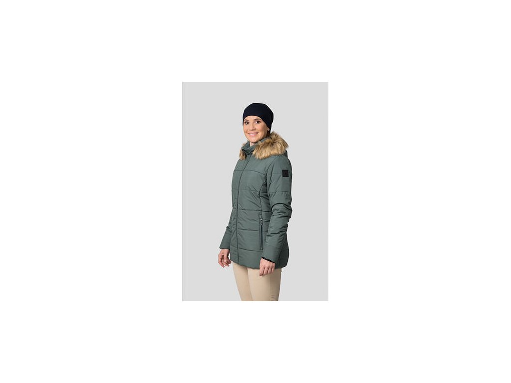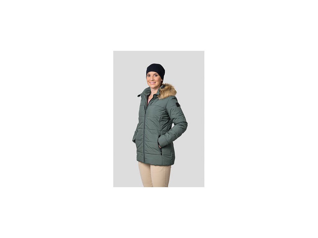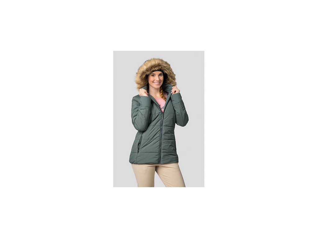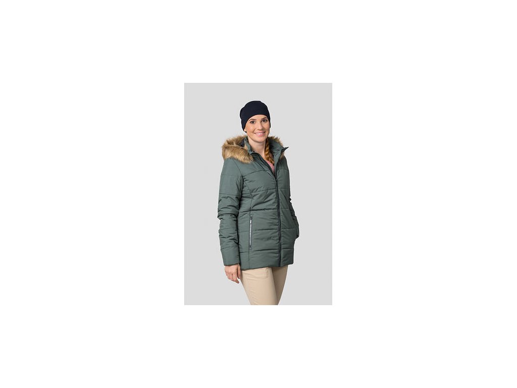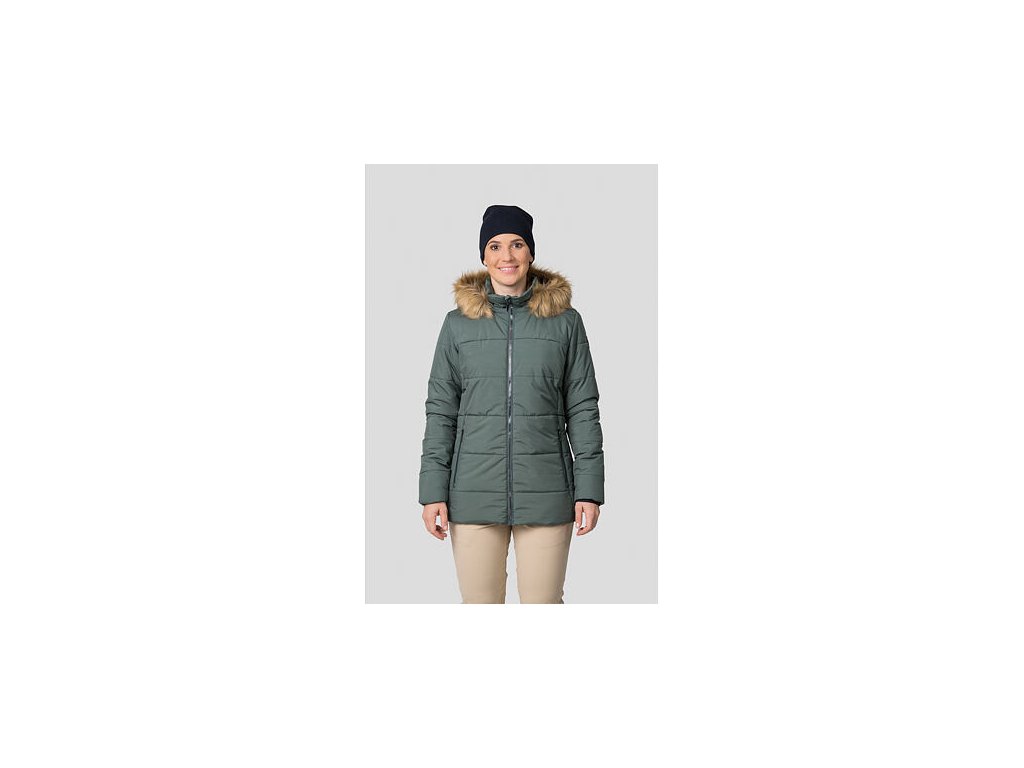 U městské bundy Hannah Mairi je použit membránový materiál Resstex s vodním sloupcem 5 000 mm s DWR úpravou, který je doplněn o měkkou izolační výplň Duratherm High Loft. Bunda je vybavena kapucí s odepínacím kožichem, hlavním kostěným zipem a dvěma výraznými kapsami na zip. Všechny zipy mají metalický efekt, který přispívá k celkovému elegantnímu dojmu z tohoto produktu. Elastická rukávová manžeta a spodní kraj stažený do gumy zaručí, že pod bundu nebude foukat. Dekorativní prošití ještě více podtrhne trendy střih kabátu.