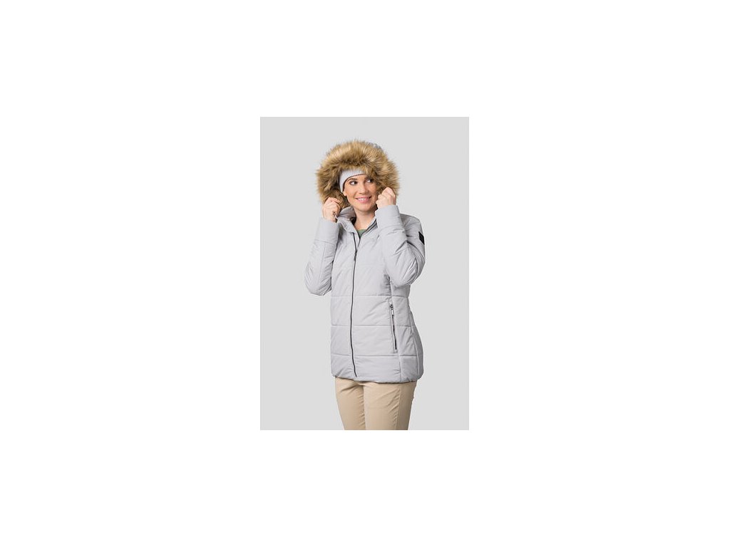 U městské bundy Hannah Mairi je použit membránový materiál Resstex s vodním sloupcem 5 000 mm s DWR úpravou, který je doplněn o měkkou izolační výplň Duratherm High Loft. Bunda je vybavena kapucí s odepínacím kožichem, hlavním kostěným zipem a dvěma výraznými kapsami na zip. Všechny zipy mají metalický efekt, který přispívá k celkovému elegantnímu dojmu z tohoto produktu. Elastická rukávová manžeta a spodní kraj stažený do gumy zaručí, že pod bundu nebude foukat. Dekorativní prošití ještě více podtrhne trendy střih kabátu.