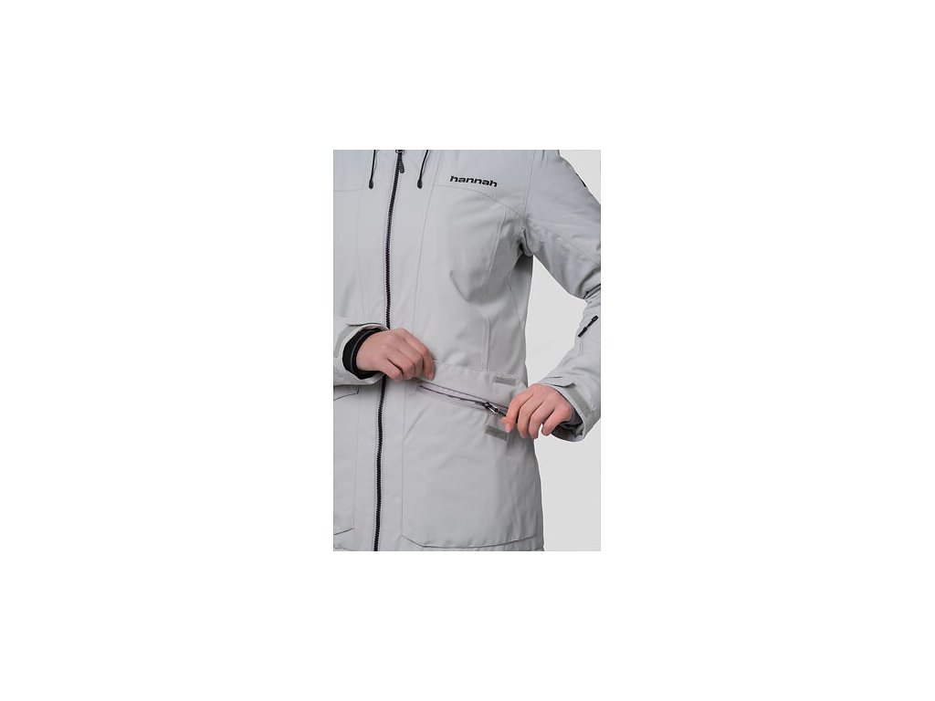Rukávy jsou anatomicky tvarované a jejich zakončení je řešeno patkou se suchým zipem, která umožňuje regulaci obvodu. Proti vnikání sněhu je bunda zařízena sněhovým límcem v pase, elastickou manžetou v rukávu a stahováním v dolním lemu. K této lyžařské bundě lze zakoupit do kompletu kalhoty HANNAH AWAKE II ve stejných parametrech a materiálech.