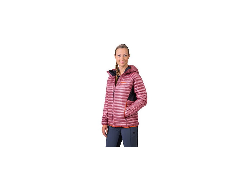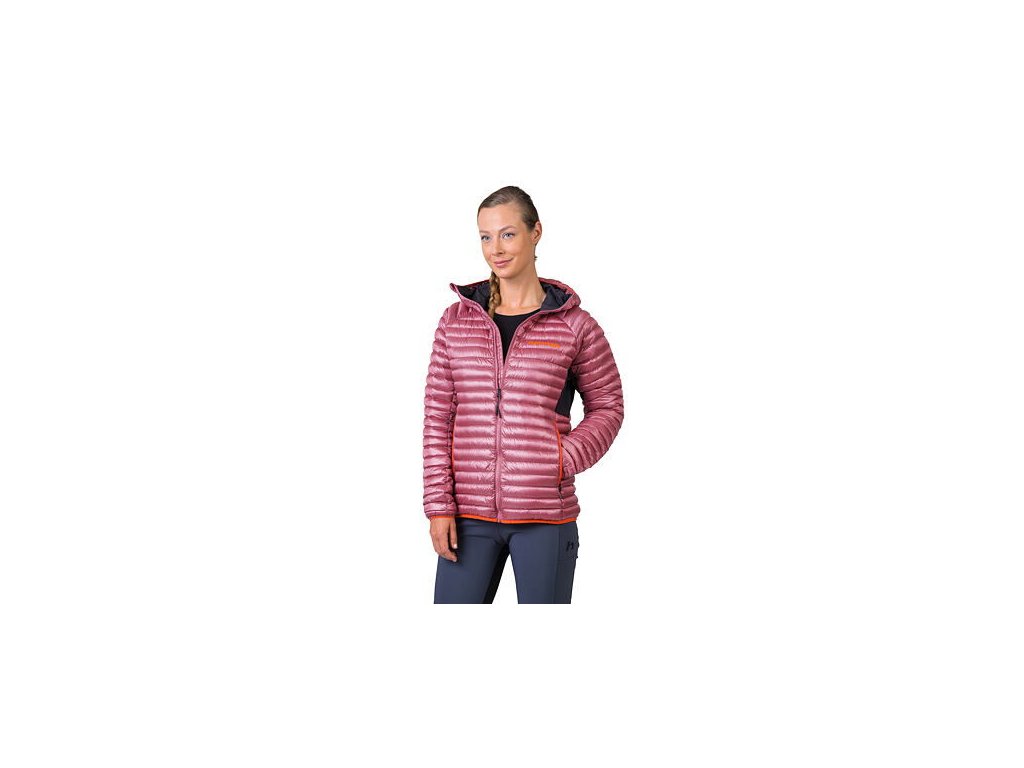 Dámská odlehčená péřová bunda s povrchovou úpravou materiálu proti nasákavosti. Pružné panely v podpaží umožňují uvolněný pohyb a komfort při nošení. Technologie komorového plnění obsahuje vysoce kvalitní kachní peří v poměru 80/20 s plnivostí 750 cuin. Prachové kachní peří pochází z certifikovaných farem a zpracovává se v souladu s životním prostředím.