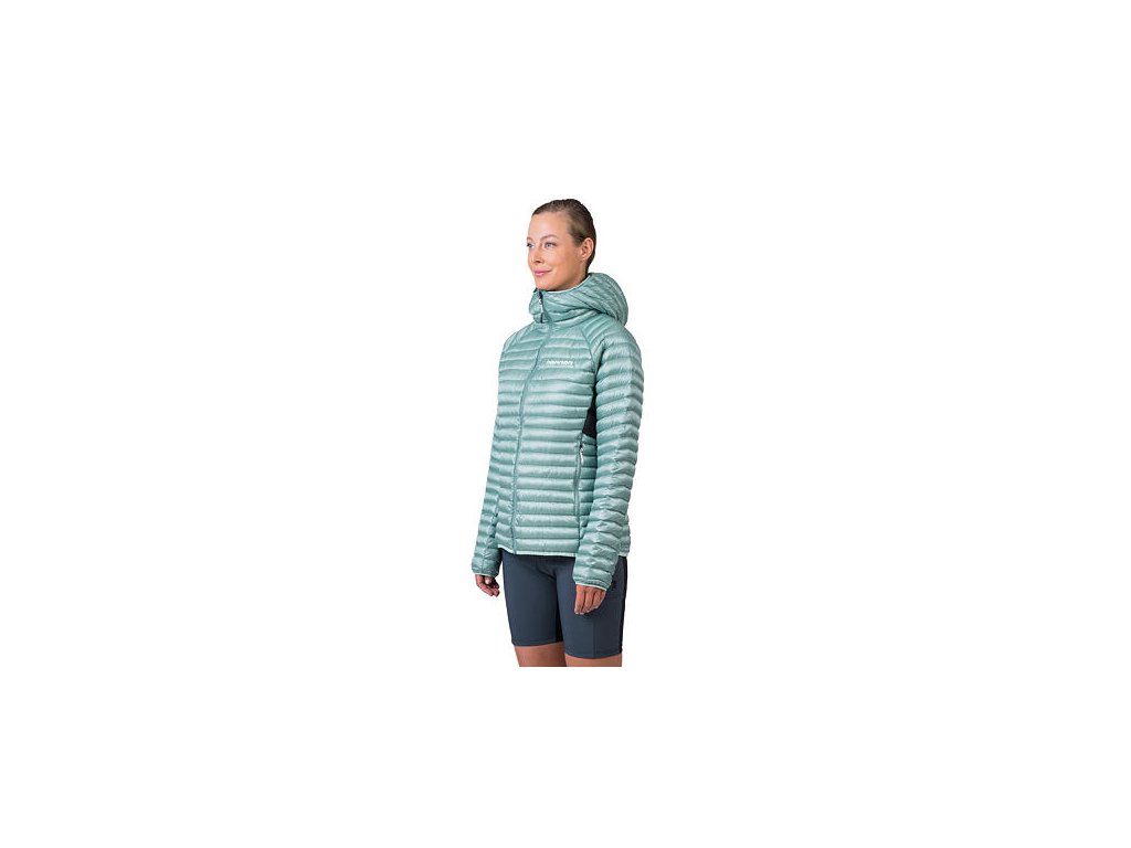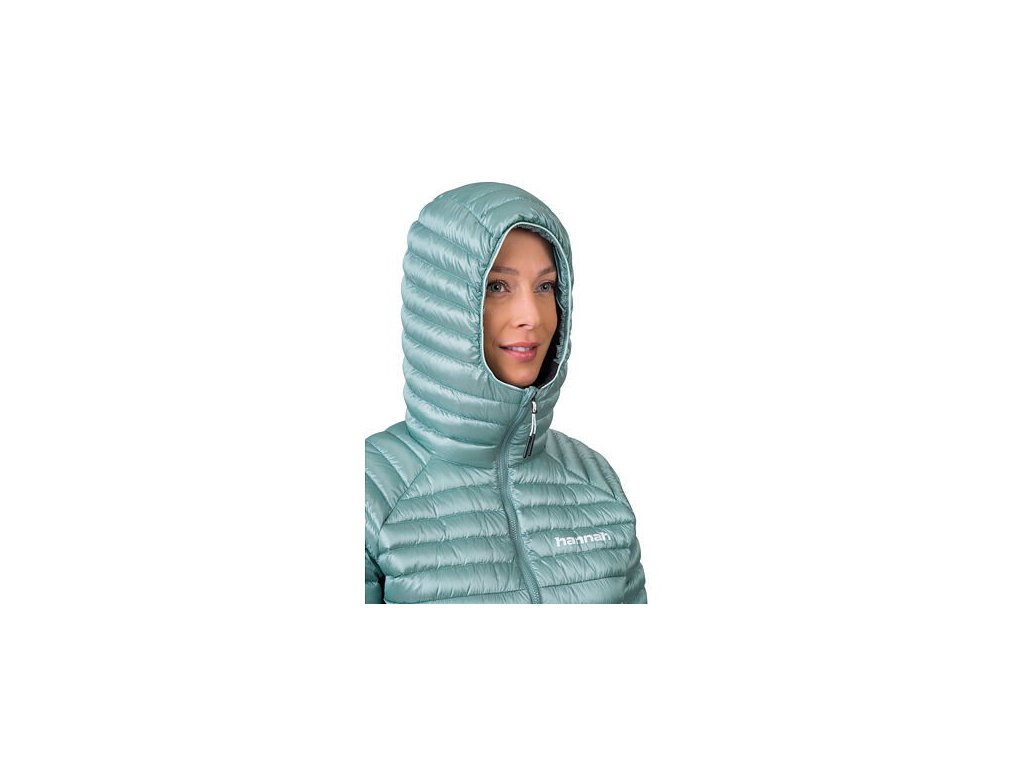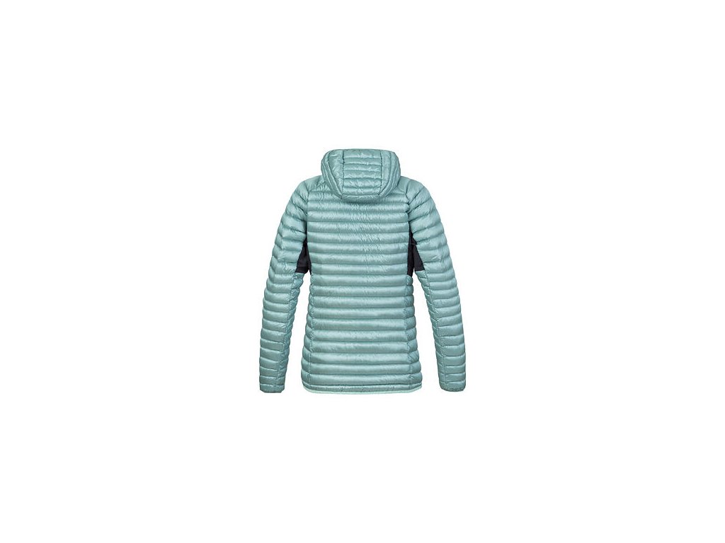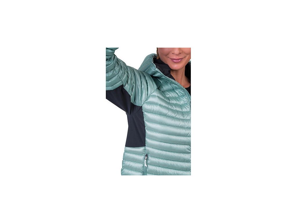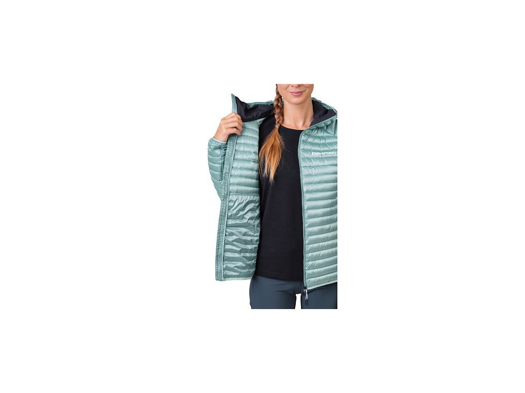 Dámská odlehčená péřová bunda s povrchovou úpravou materiálu proti nasákavosti. Pružné panely v podpaží umožňují uvolněný pohyb a komfort při nošení. Technologie komorového plnění obsahuje vysoce kvalitní kachní peří v poměru 80/20 s plnivostí 750 cuin. Prachové kachní peří pochází z certifikovaných farem a zpracovává se v souladu s životním prostředím.