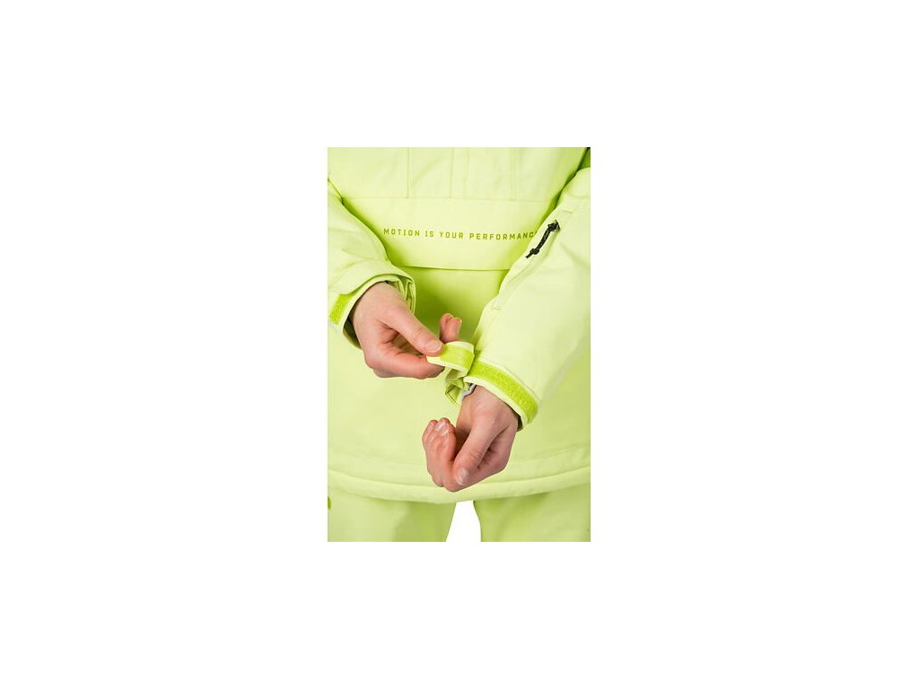 Boční rozparek na zip dosahuje až k podpaží. Uživatelský komfort dotváří i anatomicky tvarované rukávy zakončené stahováním patkou se suchým zipem a možnost regulace v zadní části kapuce a v dolním lemu bundy.