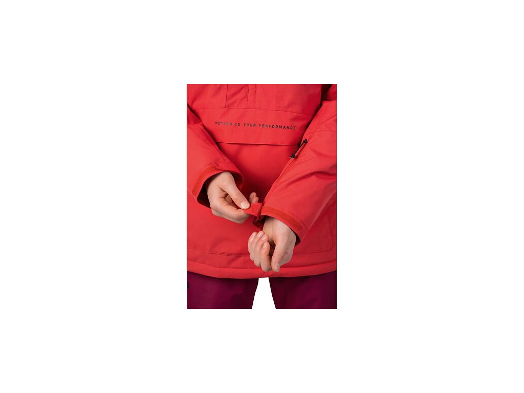 Boční rozparek na zip dosahuje až k podpaží. Uživatelský komfort dotváří i anatomicky tvarované rukávy zakončené stahováním patkou se suchým zipem a možnost regulace v zadní části kapuce a v dolním lemu bundy.