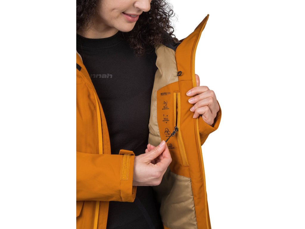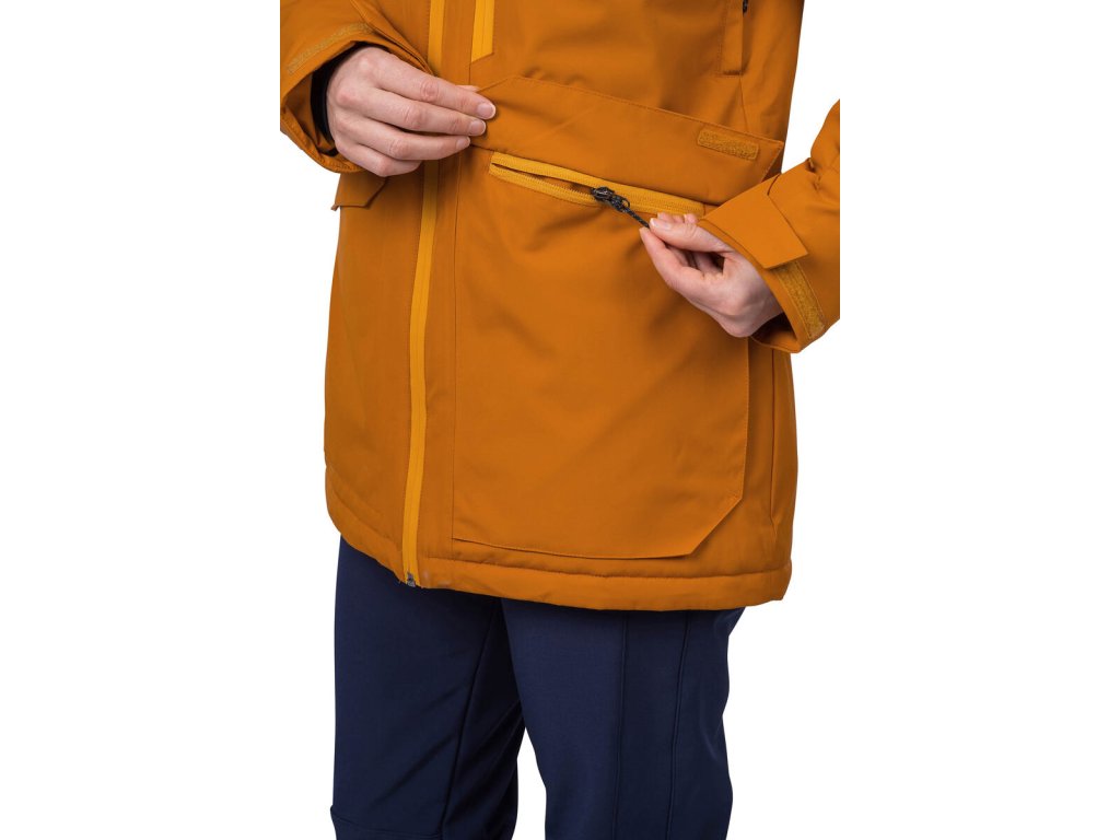 Komfortní střih bundy v jednobarevném provedení s nepromokavou a zároveň prodyšnou membránou Resstex 10 000 a voděodolnými zipy. O izolaci se postará Duratherm Classic duté vlákno a svrchní nenasákavost bundy zajistí DWR úprava. Bunda má veškerou výbavu lyžařské bundy - odvětrání v podpaží, sněhový límec v pase, vnitřní kapsa na brýle, rukávová kapsa na skipas.