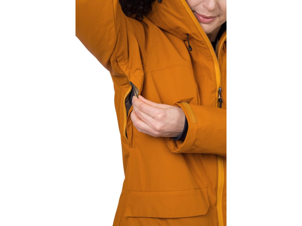Anatomicky tvarované rukávy jsou zakončené stahováním patkou se suchým zipem, uvnitř rukávu je elastická manžeta zabraňující úniku tepla. Dvě hlavní kapsy na zip, jedna hrudní kapsa na zip a spodní kraj s regulací šířky.