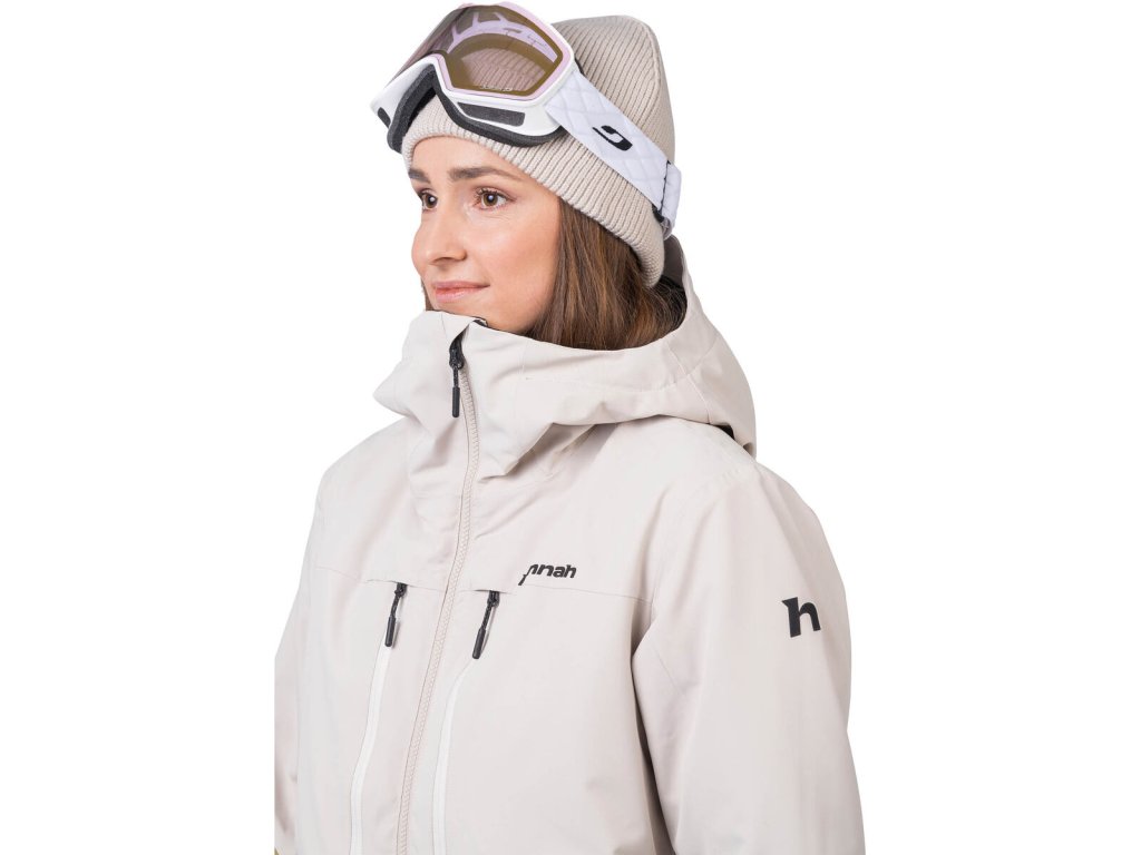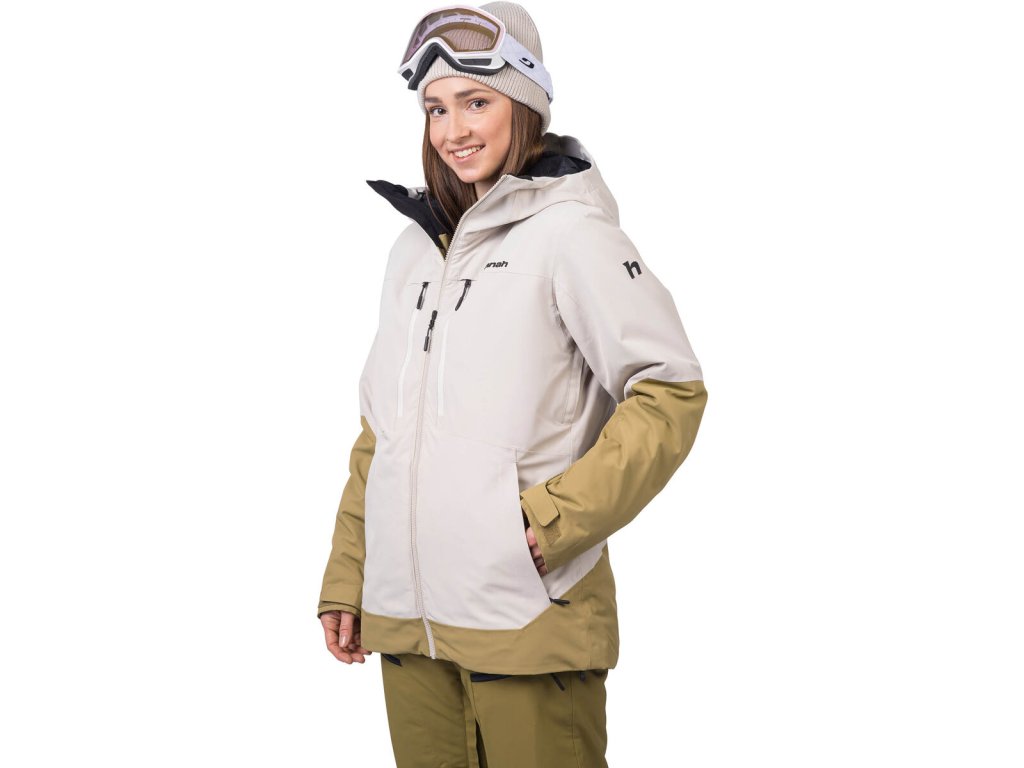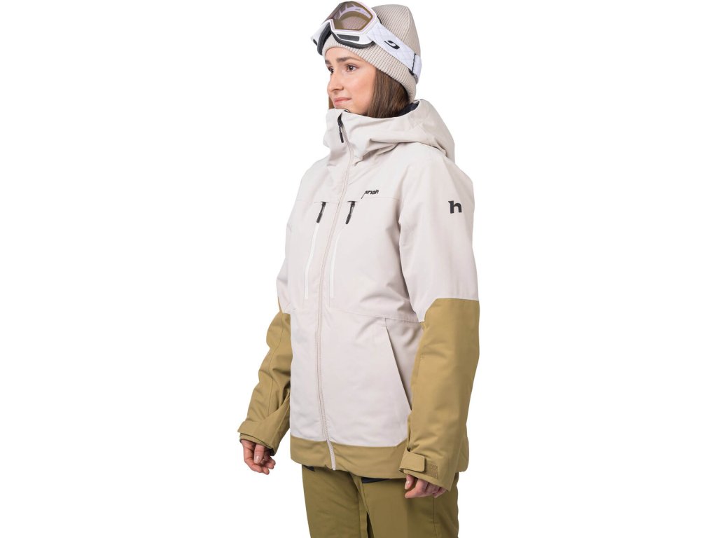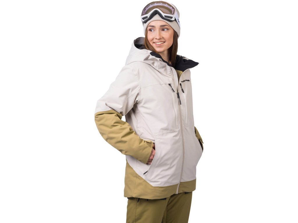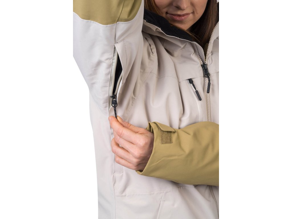 Vnitřní elastické rukávové manžety s otvorem na palec snižují únik tepla a zároveň zajistí, aby sníh zůstal tam kde má. Systém propojení bundy a kalhot umožňuje snadné připnutí lyžařských kalhot Hannah Soren.