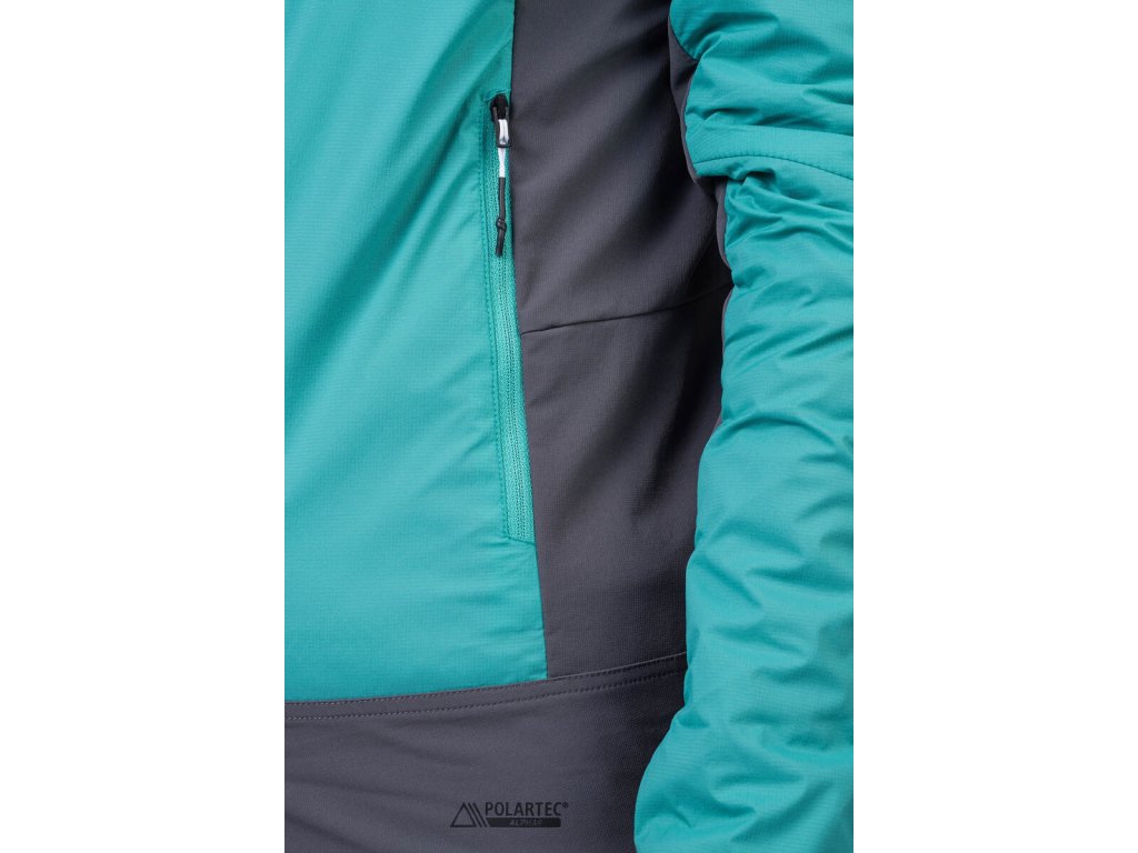 Hybridní konstrukce bundy kombinuje materiál Airlite Windproof s izolací na vnitřní straně a AFT Double Weave Pro. Velmi lehký, větruvzdorný a zároveň prodyšný materiál Airlite Windproof je na vnitřní části ve strategických partiích bundy zateplený materiálem Polartec Alpha. Polartec Alpha je speciálně vyvinutý materiál (pro zajímavost - původně vyvinut pro speciální jednotky USA) pro vysoce aerobní aktivity, kdy hydrofobní vlákna odolávají vlhkosti a rychle schnou.