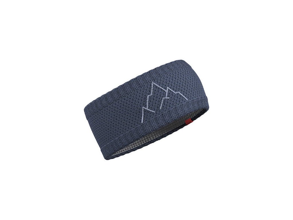 Pletená čelenka z merino vlny s barevně kontrastní výšivkou. Na vnitřní straně má čelenka funkční syntetickou podšívku. Klasický způsob pletení čelenky přechází na krajích k žebrovanému úpletu , který se dobře přizpůsobí obvodu hlavy a zároveň působí jako dekorativní prvek. Moderní design čelenky v přírodním materiálu dokresluje kontrastní výšivka hor.