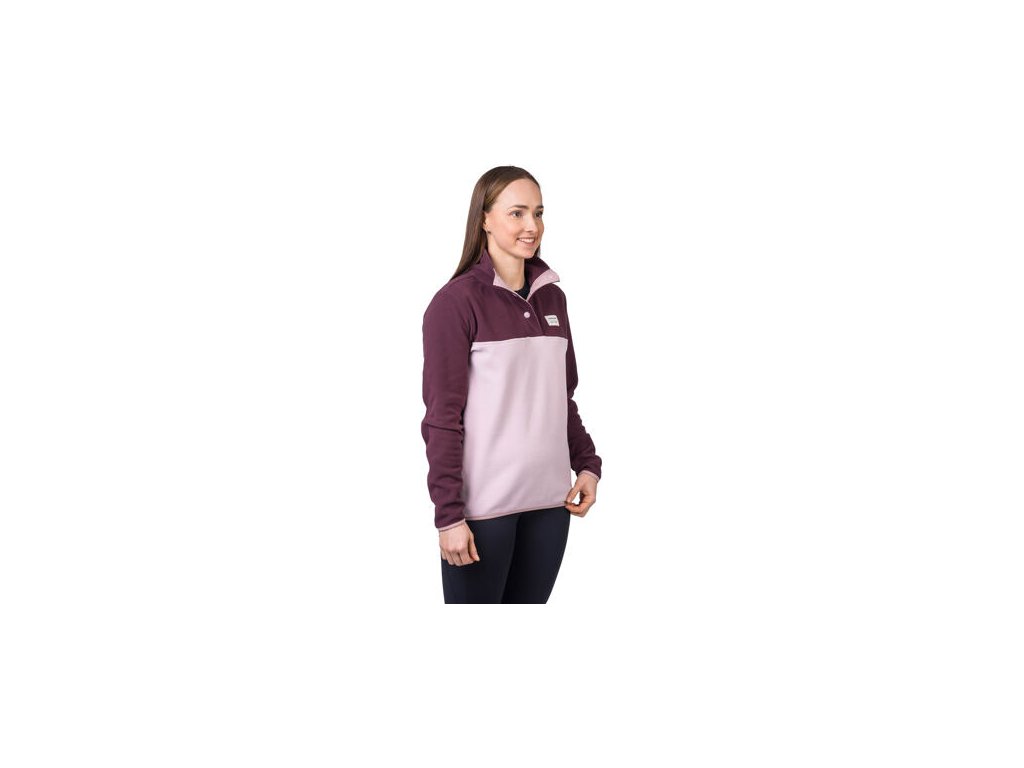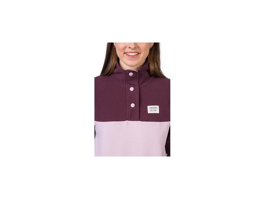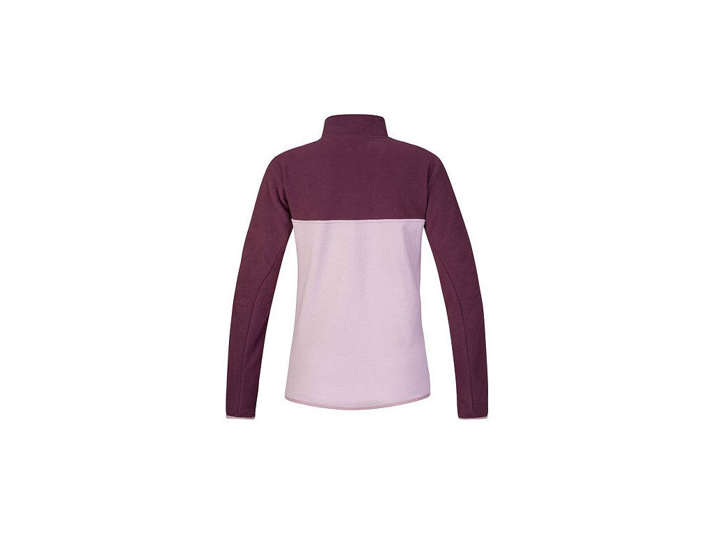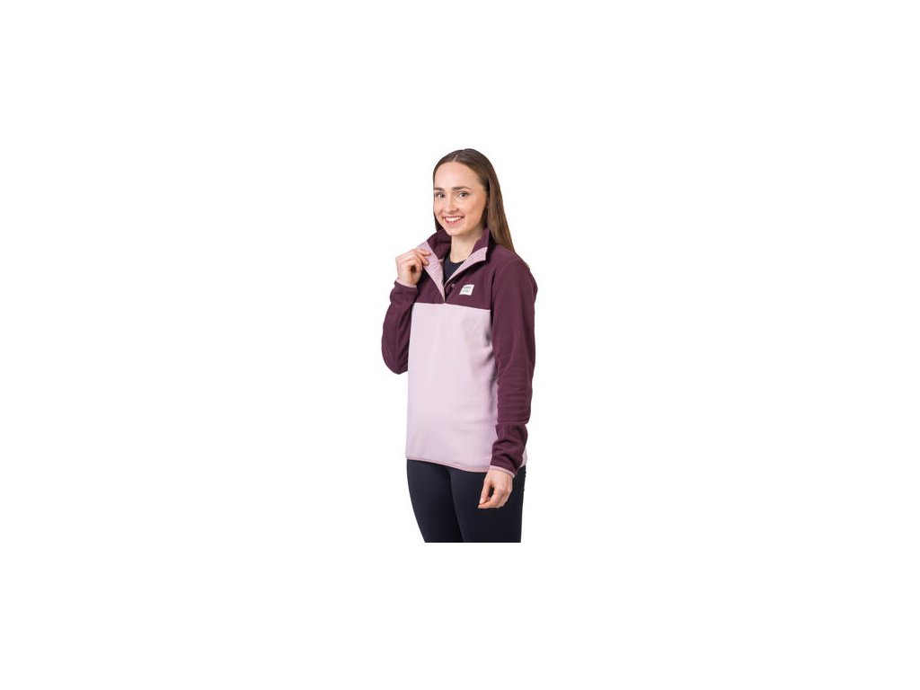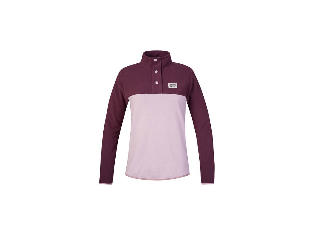 Mikina z jemného, elastického a hřejivého fleece materiálu Polarsoft Micro, který má zároveň nízkou hmotnost a dlouhotrvající životnost. Střih řešený přes hlavu, částečné zapínání mikiny na patentky, které přechází do zvýšeného komfortního stojáčku. Anatomicky tvarované rukávy a spodní okraj jsou lemované gumou. Retro design a barevné členění čerpá z původních kořenů značky Hannah.