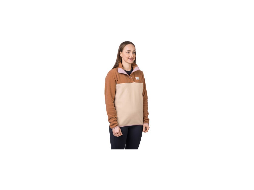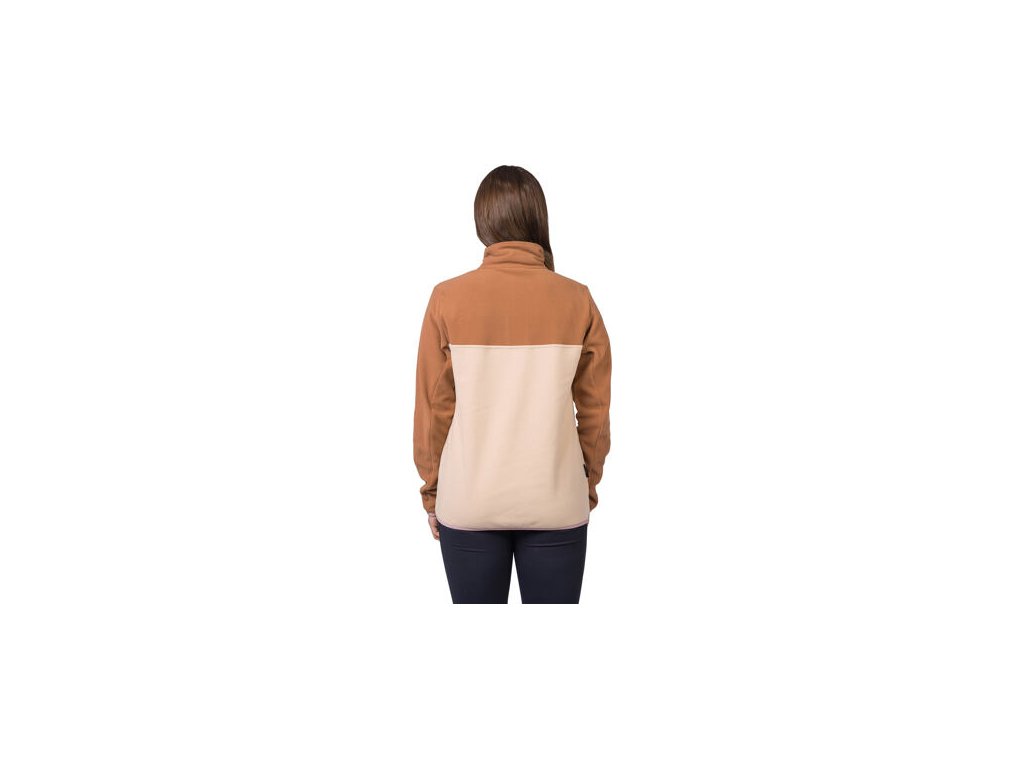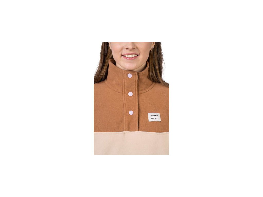 Mikina z jemného, elastického a hřejivého fleece materiálu Polarsoft Micro, který má zároveň nízkou hmotnost a dlouhotrvající životnost. Střih řešený přes hlavu, částečné zapínání mikiny na patentky, které přechází do zvýšeného komfortního stojáčku. Anatomicky tvarované rukávy a spodní okraj jsou lemované gumou. Retro design a barevné členění čerpá z původních kořenů značky Hannah.