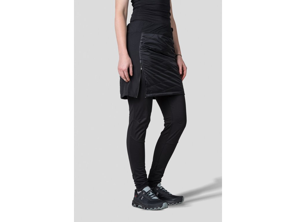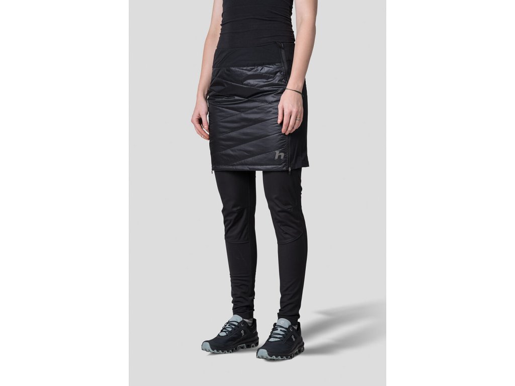 Sukně má přední a zadní zateplený díl z ultra lehkého, pevného a zároveň prodyšného materiálu Airlite AC, vodoodpudivá úprava zajistí nenasákavost. Vnitřní izolační výplň Dupont Sorona Aura je lehká, prodyšná, snadno tvarovatelná a snižuje dopad na životní prostředí tím, že využívá 37% obnovitelných rostlinných složek.