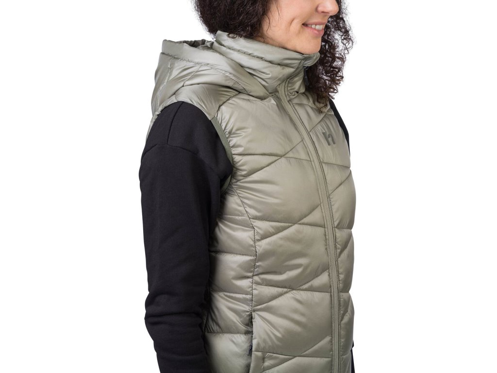 Výhodou je vysoká plnivost, výborné termoregulační vlastnosti a vesta je navíc pocitově i vizuálně podobná péřovce. Vesta má zateplený límec s kapucí se stahováním, hlavní kapsy na zip a reverzní hlavní zip. Součástí vesty je transportní obal. Široké možnosti využití od turistiky, pobytu v přírodě až po cestování a každodenní nošení.