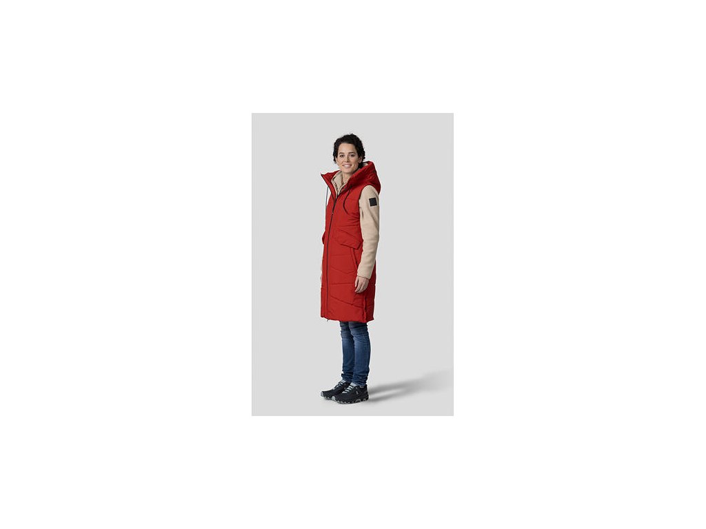 Dámská prošívaná vesta Hannah Ela v moderním prodlouženém střihu je lehká a příjemná na tělo a skvěle vás zahřeje během procházek po městě. U vesty je použit membránový materiál Resstex s vodním sloupcem 5 000 mm s DWR úpravou, který je doplněn o měkkou izolační výplň Duratherm High Loft. Vesta je vybavena přinechanou kapucí se stahováním, voděodolným dvoucestným zipem a dvěma výraznými kapsami na zip. Praktickou vychytávkou jsou boční rozparky na zip. Dekorativní prošití ještě více podtrhne trendy střih vesty.