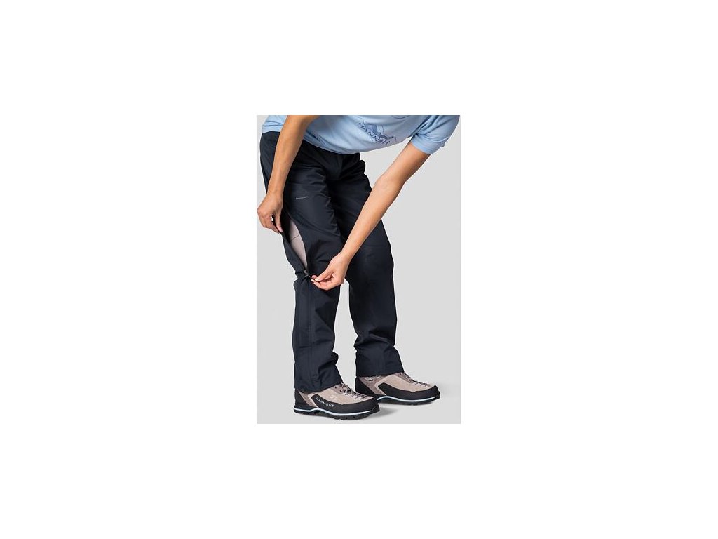 Praktické dvoucestné rozepínání zipu nohavic navíc poslouží v případě potřeby i jako ventilace. Anatomicky tvarovaná kolena a nohavice zakončené spodním lemem s regulací šířky. Kompletně podlepené švy jsou u nepromokavých membránových kalhot samozřejmostí. Vhodné jsou pro VHT, ferraty či vícedenní pobyt v horách.