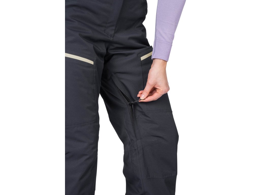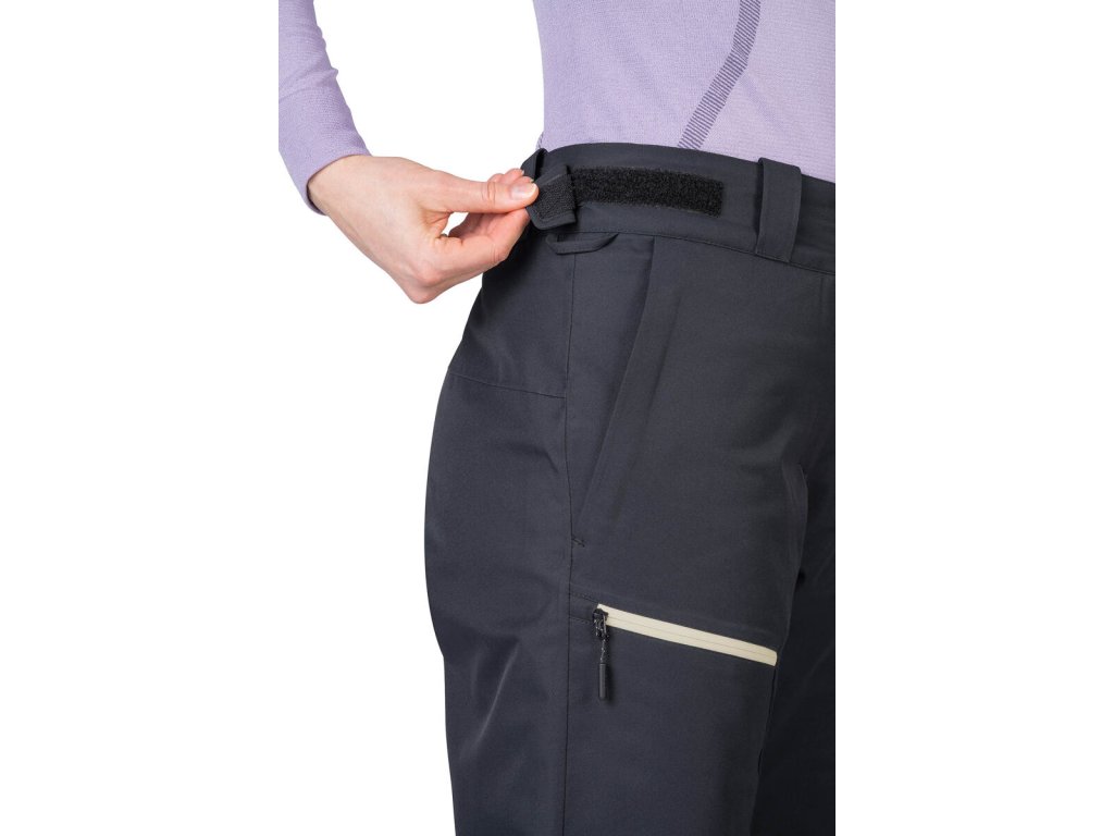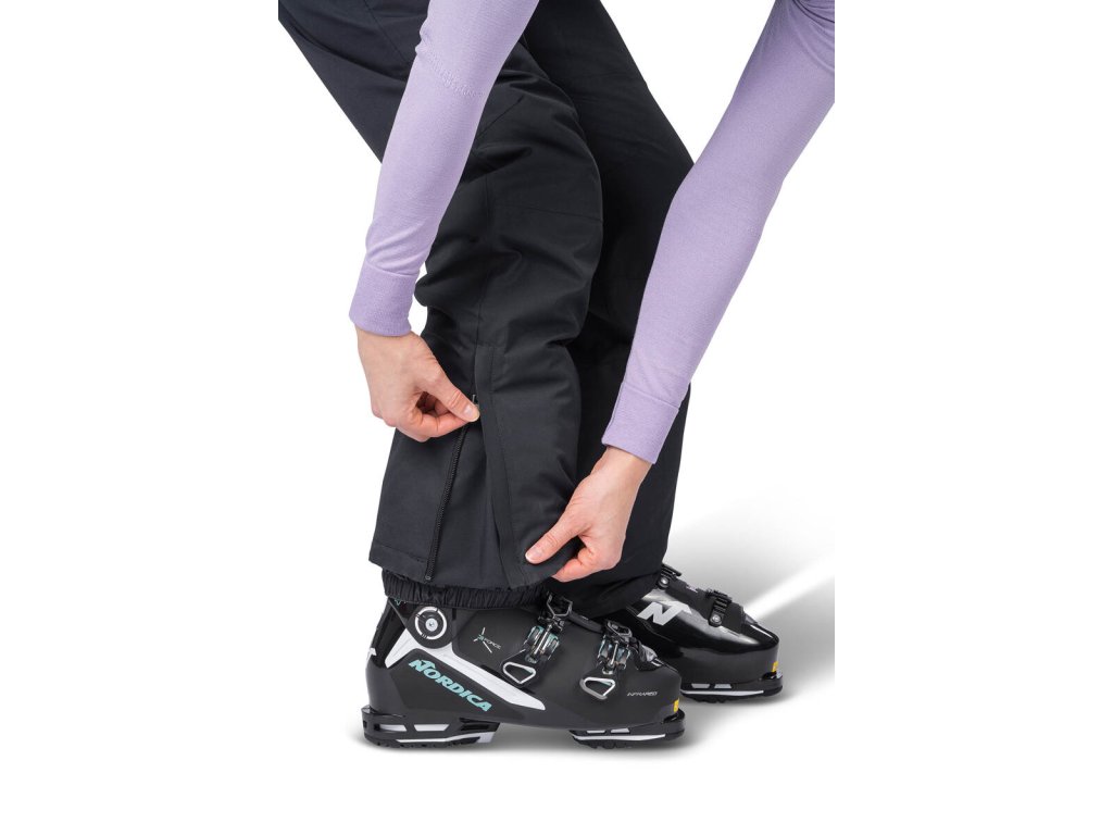Kalhoty mají natvarovaná kolena, 2 hlavní kapsy na zip a 2 stehenní kapsy na zip. Ventilaci podpoří na vnitřní straně nohavic odvětrání na zip, které je kryté lepenou légou. Dolní část nohavic má rozparek na zip pro lepší převléknutí přes lyžařské přeskáče. Vnitřní sněhová manžeta v nohavici zajistí, aby sníh zůstal vně nohavice. Třešničkou je 3D logo na pravé stehenní kapse.