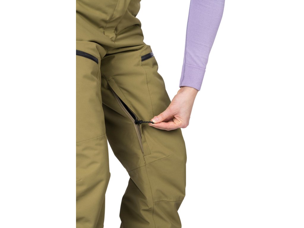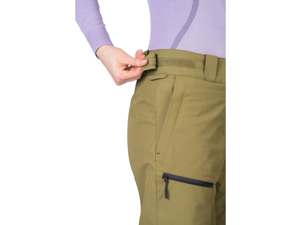 Kalhoty mají natvarovaná kolena, 2 hlavní kapsy na zip a 2 stehenní kapsy na zip. Ventilaci podpoří na vnitřní straně nohavic odvětrání na zip, které je kryté lepenou légou. Dolní část nohavic má rozparek na zip pro lepší převléknutí přes lyžařské přeskáče. Vnitřní sněhová manžeta v nohavici zajistí, aby sníh zůstal vně nohavice. Třešničkou je 3D logo na pravé stehenní kapse.