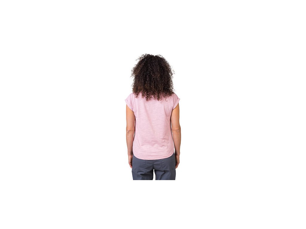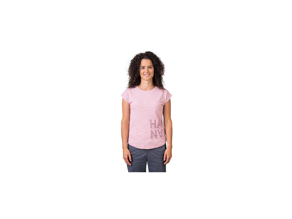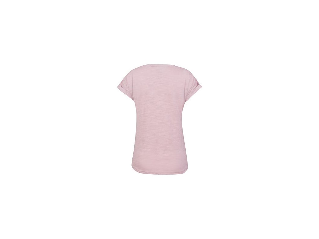 Kulatý volnější výstřih a spadlé kratší rukávy. Strukturovaně žíhaný materiál s barevně decentním printem.