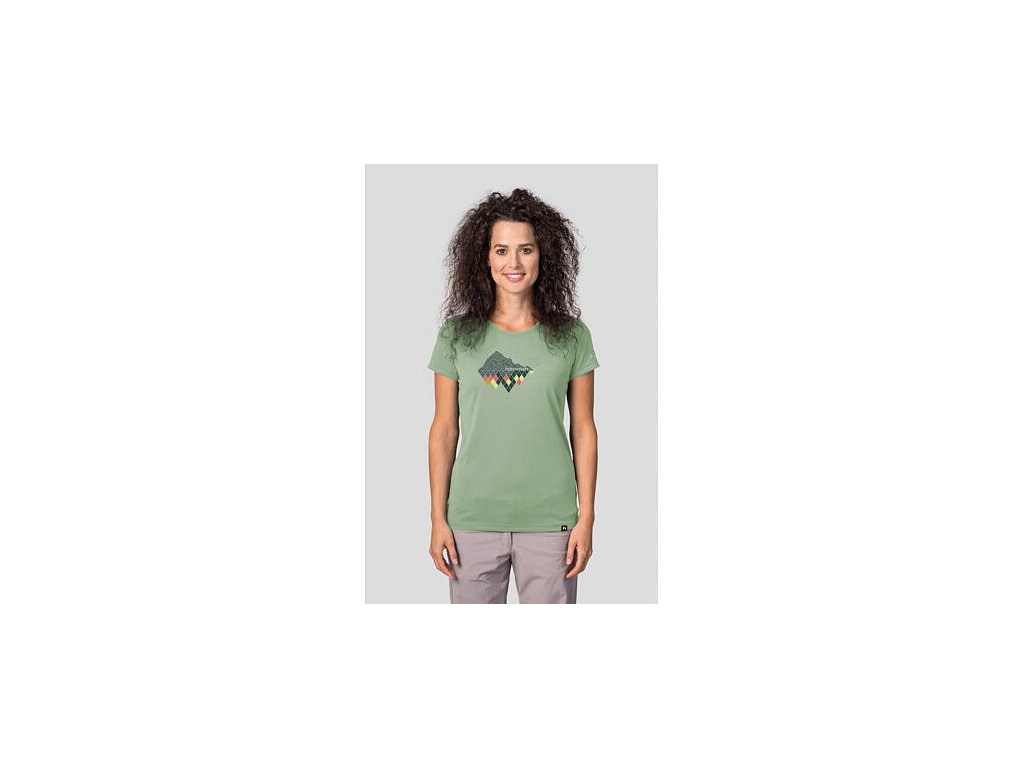 Dámské sportovní tričko z recyklovaného polyesteru. Sportovní střih s logo printem na prsou bude dobře sloužit na turistiku, cyklistiku, rodinné výlety či cestování.
