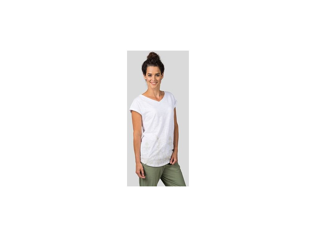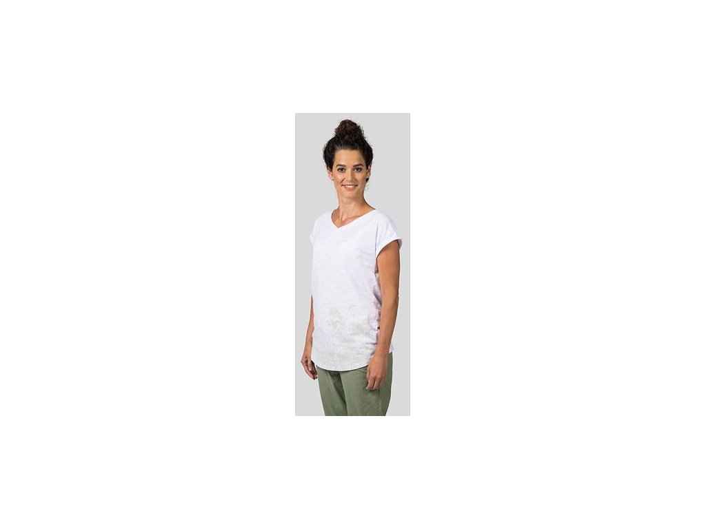Hannah Marme je dámské triko s krátkým rukávem, které se hodí jak pro volný čas, tak do města. Je v klasickém střihu Regular, který je pohodlný a sedí většině typů postav. Triko má výstřih do V a záložky na rukávech. Protože je vyrobené z velmi lehkého a příjemného materiálu, je ideální pro teplé letní dny. Už se v něm vidíš?