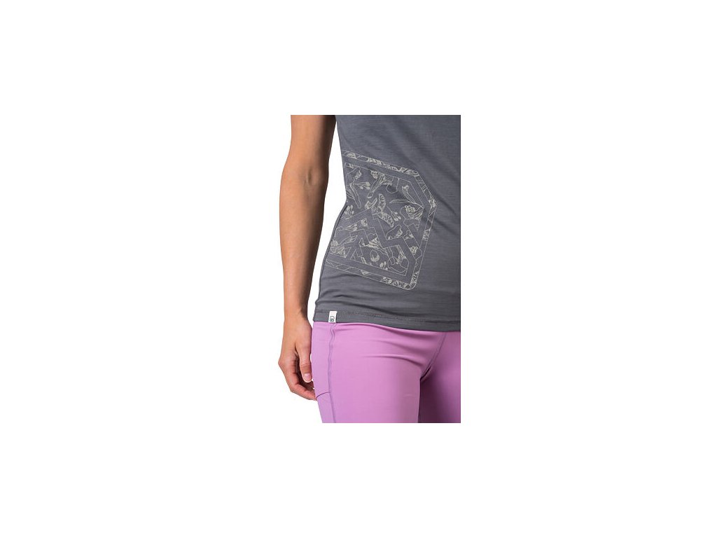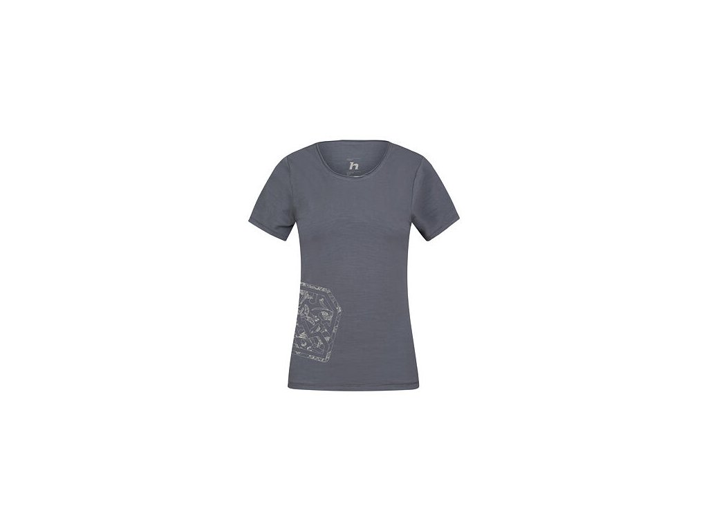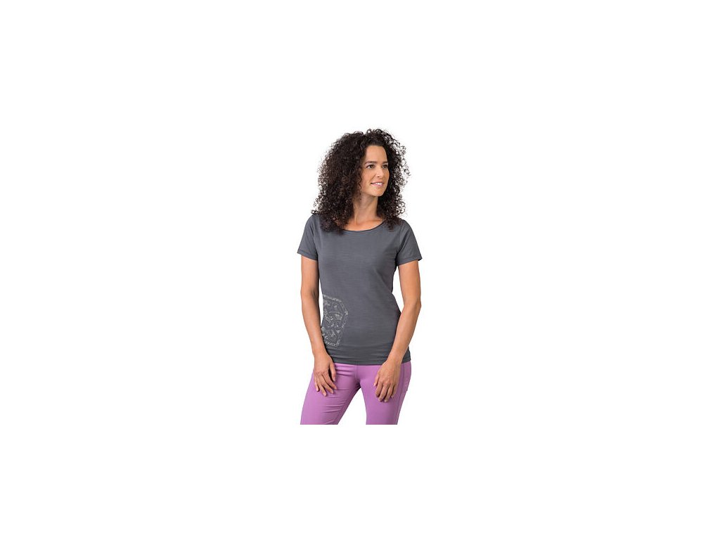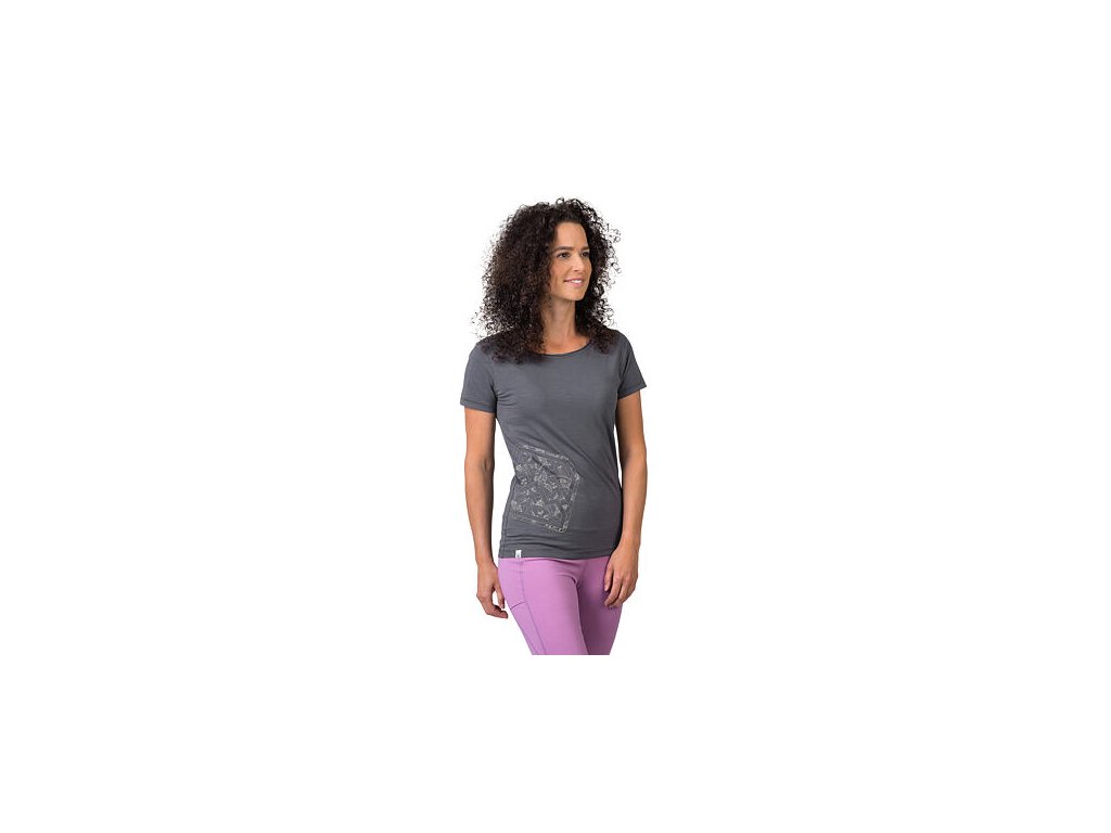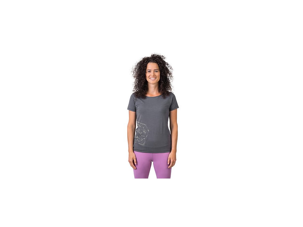 Dámské volnočasové tričko. Dámské bavlněné tričko s podílem 5 % elastanu pro vyšší přizpůsobivost a komfort při nošení. Kulatý výstřih a krátký rukáv. Strukturovaný žíhaný materiál s printem přes pravý bok. Vyšší gramáž 180g/m2.
