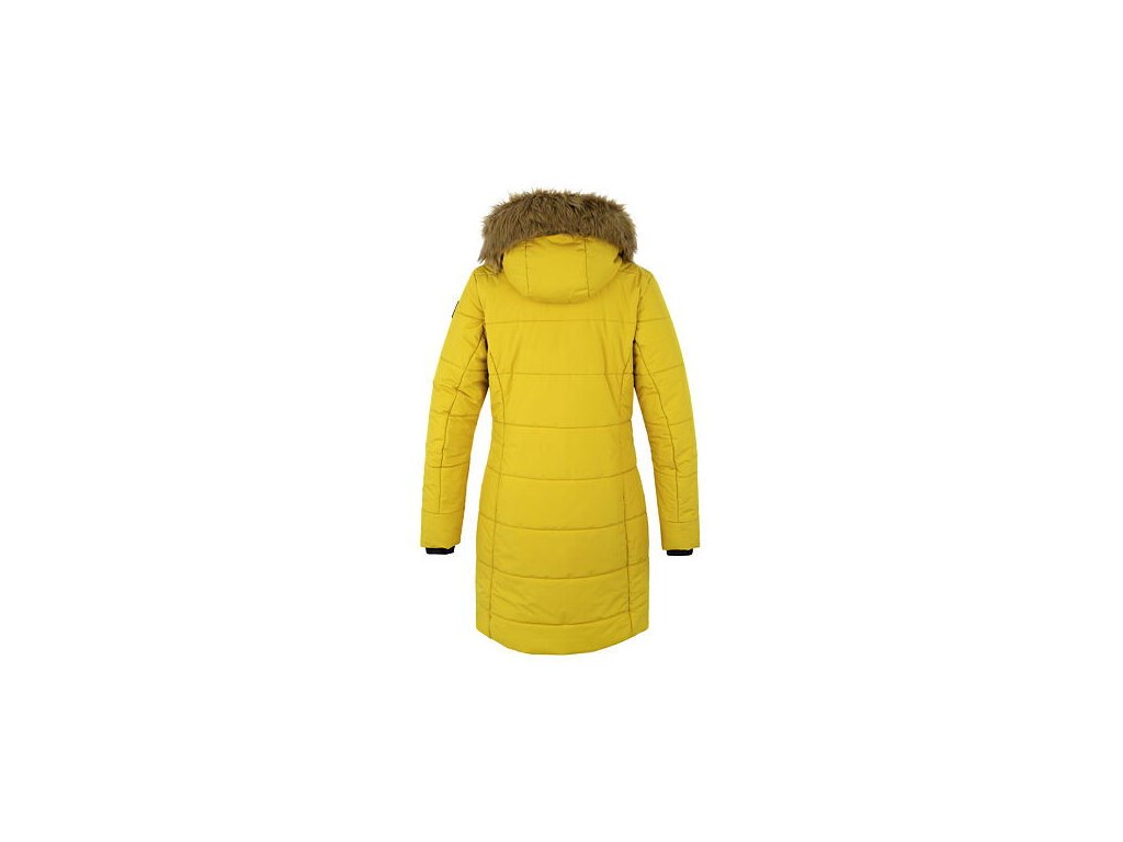 U městského kabátu Hannah Gema je použit membránový materiál Resstex s vodním sloupcem 5 000 mm s DWR úpravou, který je doplněn o měkkou izolační výplň Duratherm High Loft. Kabát je vybaven kapucí s odepínacím kožichem, dvoucestným zipem, který je krytý légou a dvěma kapsami na zip. Všechny zipy mají metalický efekt, který přispívá k celkovému elegantnímu dojmu z tohoto produktu. Dekorativní prošití ještě více podtrhne trendy střih kabátu.