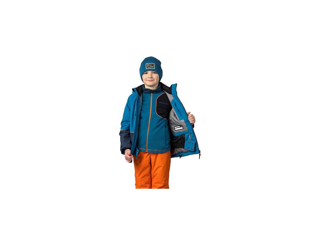 Výplň Duratherm Classic poskytuje dostatečný tepelný komfort i za vlhka. DWR povrchová vodoodpudivá úprava ještě více zlepšuje funkční vlastnosti. Anatomicky tvarované rukávy s elastickou manžetou a zakončením na suchý zip, sněhový límec v pase a spodní okraj s regulací šířky jsou samozřejmostí. Bunda má několik kapes na zip na mnoho pokladů a kapsu na skipas na rukávu. Díky reflexním prvkům budou malí lyžaři dobře vidět i při nočním lyžováním.