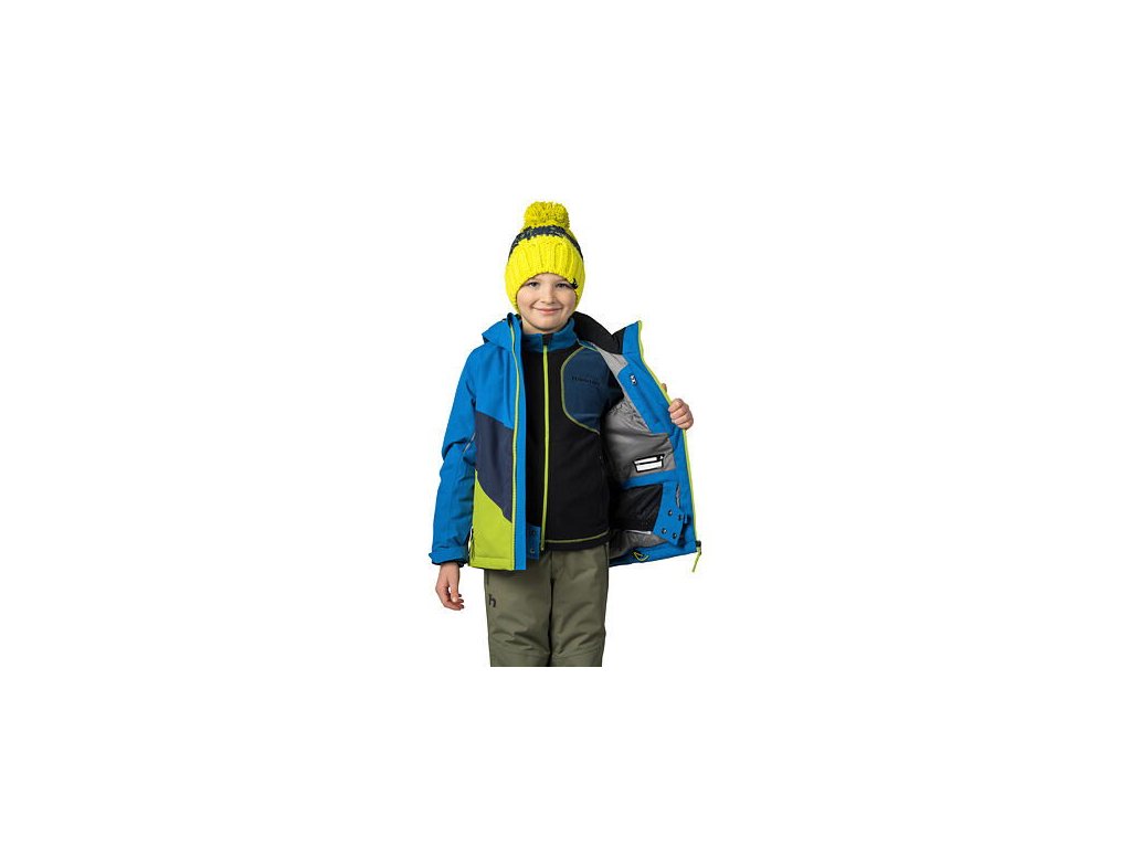 DWR povrchová vodoodpudivá úprava ještě více zlepšuje funkční vlastnosti. Anatomicky tvarované rukávy s elastickou manžetou a zakončením na suchý zip, sněhový límec v pase a spodní okraj s regulací šířky jsou samozřejmostí. Bunda má několik kapes na zip na mnoho drobností a kapsu na skipas na rukávu. Díky reflexním prvkům budou vaši mladí lyžaři dobře vidět i při nočním lyžováním.