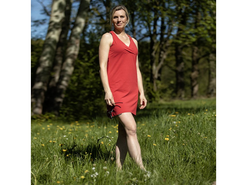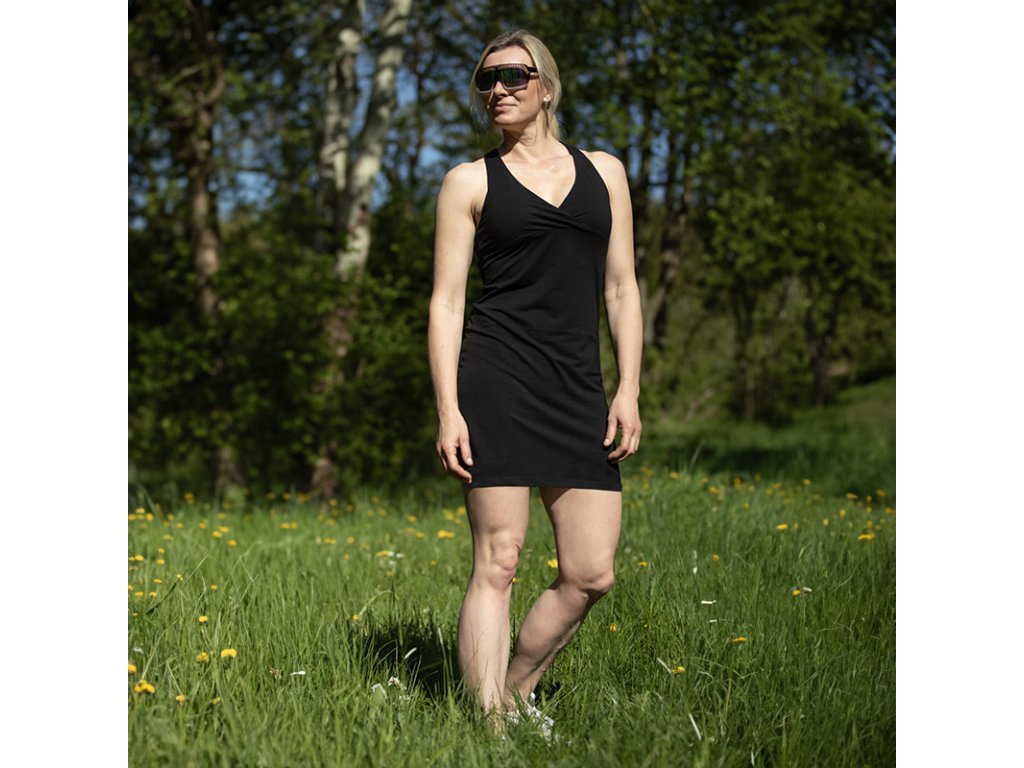 Dámské sportovní šaty s bambusem EMILY jsou vyrobeny ze směsi bambusu a bavlny, která zaručuje dokonalou prodyšnost, lehkost a příjemný pocit při nošení. Bambusové vlákno má přirozené antibakteriální vlastnosti. V horku je bambus přirozeně chladný na dotek a tato vlastnost je zachována i pro vlastnosti úpletu. Letní střih na ramínka s přestřižením a volnější sukní zajišťuje maximální pocit pohodlí a volnosti. Šaty jsou vhodné pro letní turistiku i volnočasové nošení.