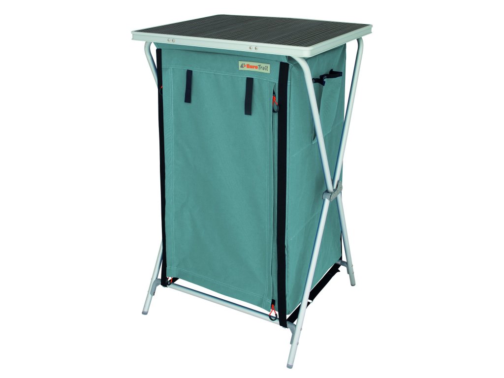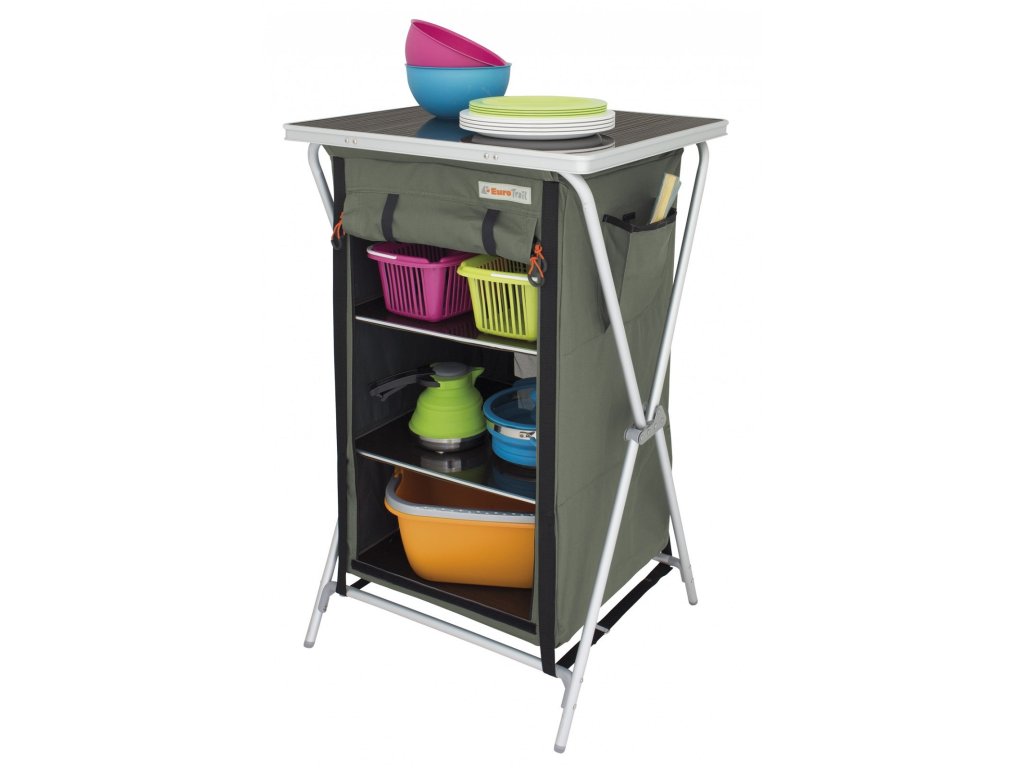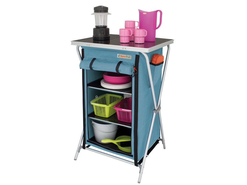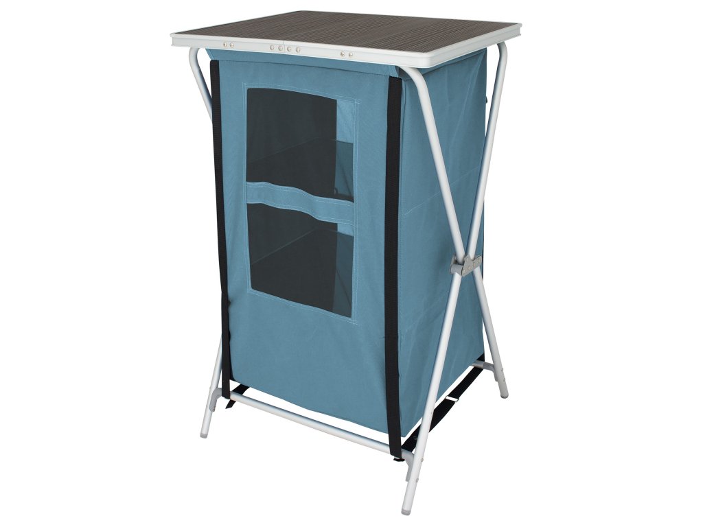 Skříňka Aubenas je navržena pro maximální využití dostupného prostoru. S praktickým systémem polic poskytuje dostatek místa pro ukládání nádobí, potravin nebo dalších kempingových potřeb. Dvířka skříňky jsou opatřena zipem, což zajišťuje bezpečné uzavření a ochranu obsahu před prachem nebo vlhkostí. Tato vlastnost je obzvlášť cenná při kempování nebo na cestách, kde je ochrana před nepříznivými vlivy počasí klíčová.