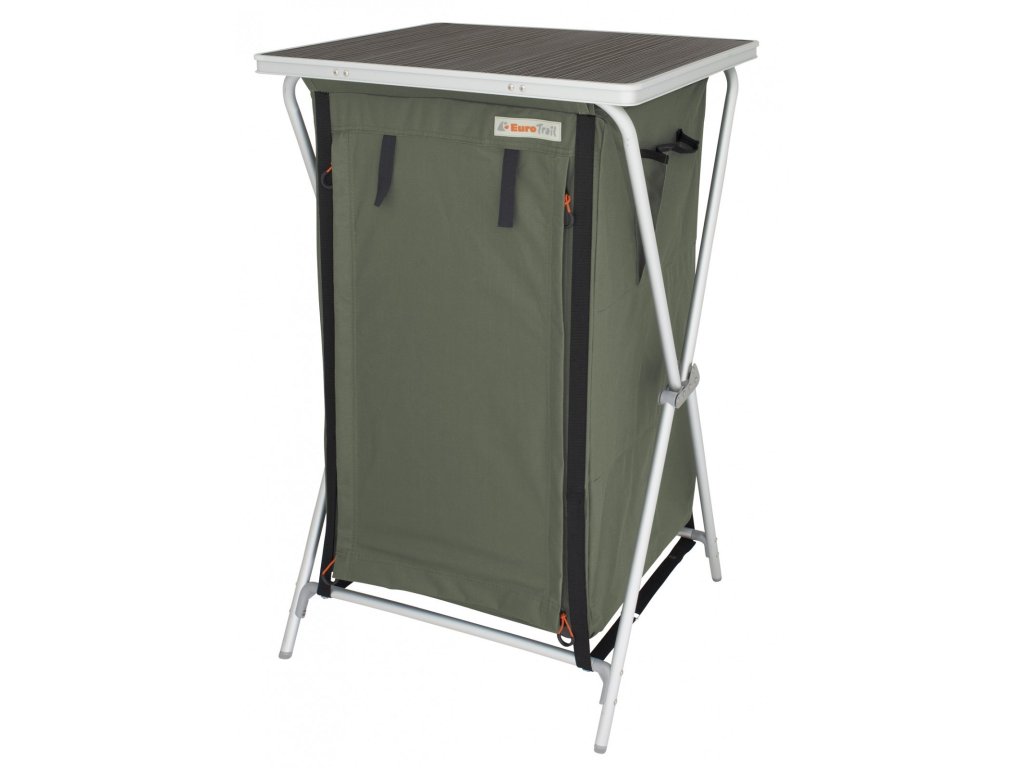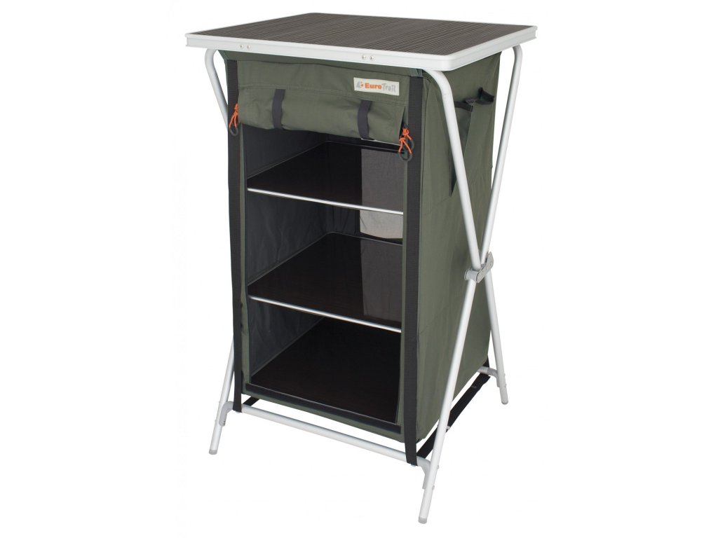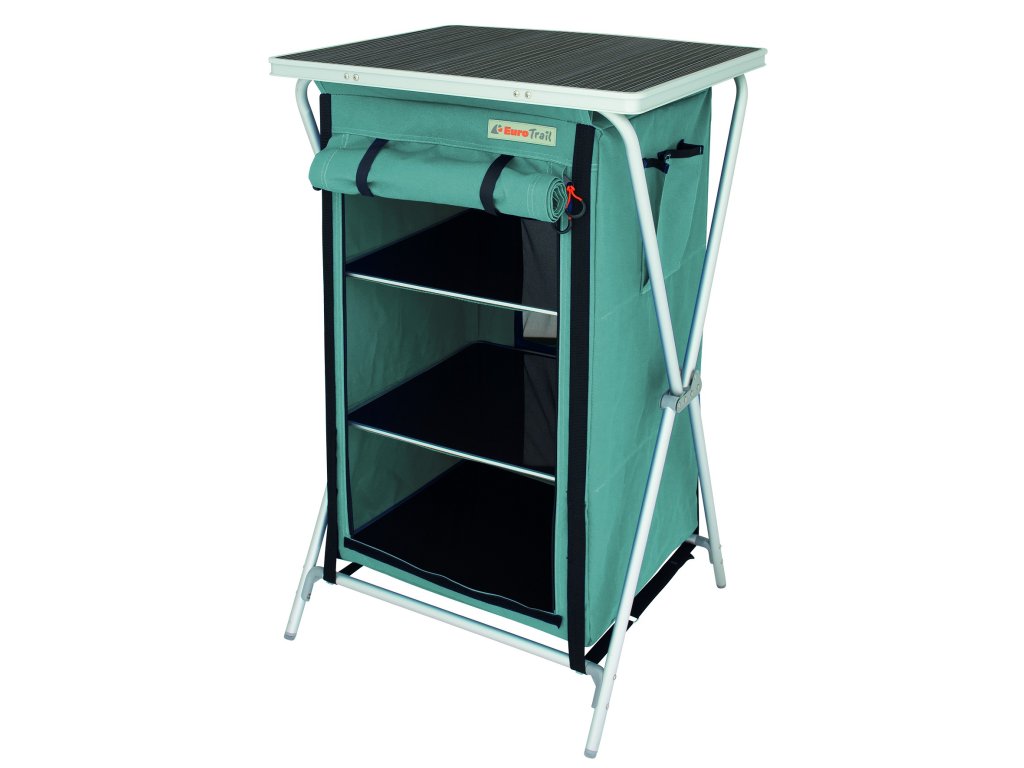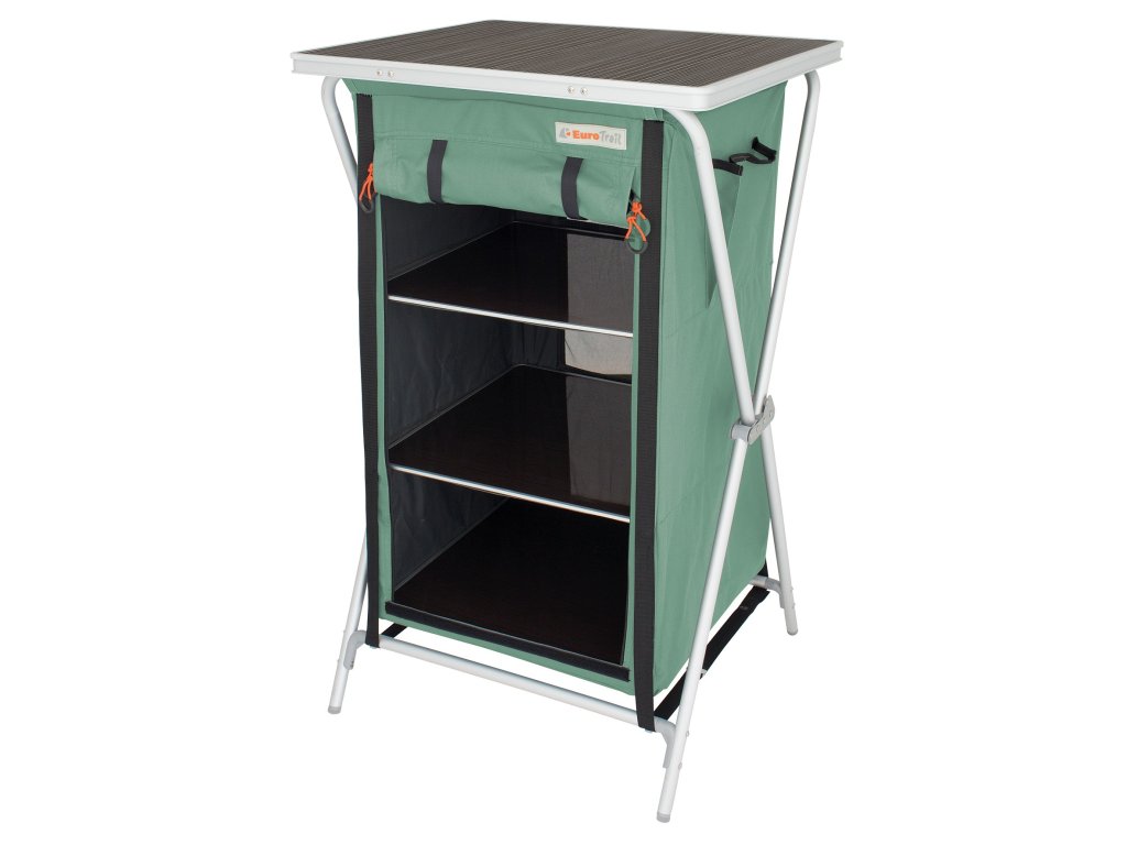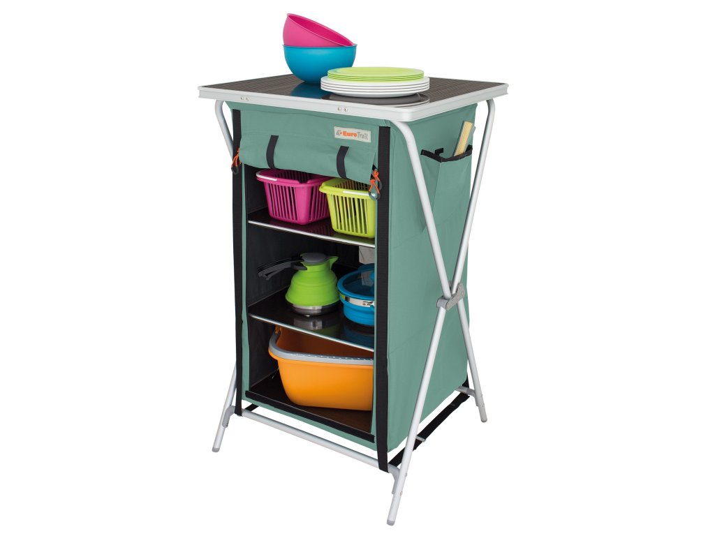 Skříňka Aubenas je navržena pro maximální využití dostupného prostoru. S praktickým systémem polic poskytuje dostatek místa pro ukládání nádobí, potravin nebo dalších kempingových potřeb. Dvířka skříňky jsou opatřena zipem, což zajišťuje bezpečné uzavření a ochranu obsahu před prachem nebo vlhkostí. Tato vlastnost je obzvlášť cenná při kempování nebo na cestách, kde je ochrana před nepříznivými vlivy počasí klíčová.