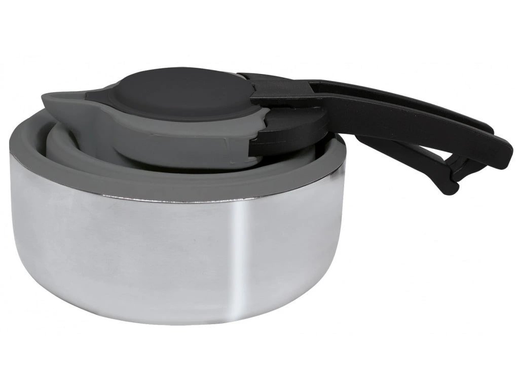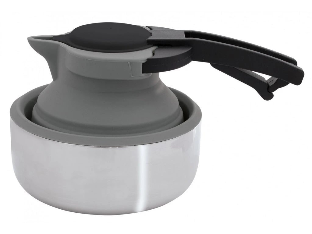 - Úspora místa: Díky skládacímu designu je konvice kompaktní a snadno uložitelná, což je ideální pro každého, kdo má omezený prostor na vybavení, ať už v batohu, karavanu nebo malém kempu.