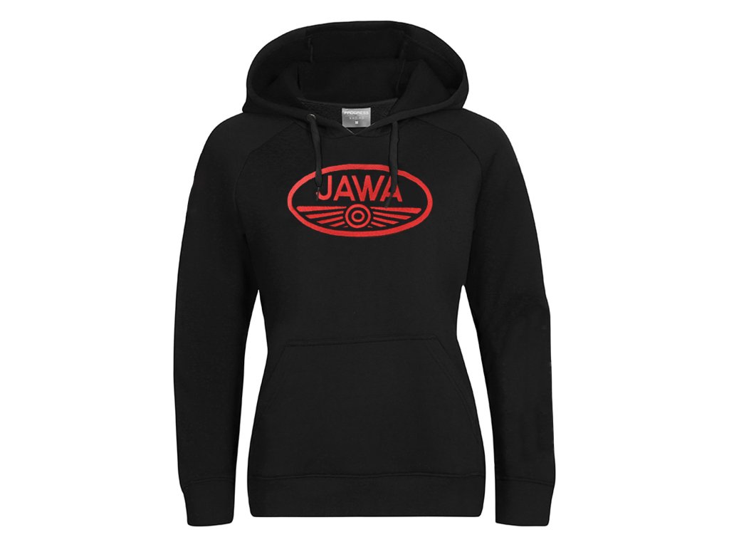 Dámská volnočasová mikina s kapucí s logem JAWA má volnější, pohodlný, skvěle padnoucí střih a stylový vzhled. Mikina má dvě boční kapsy a kapuci se stahovací tkaničkou. Mikinu využijete při při nejrůznějších sportovních aktiviách i při běžném každodenním nošení. Fanoušci motocyklů JAWA určitě ocení velké logo na prsou.
