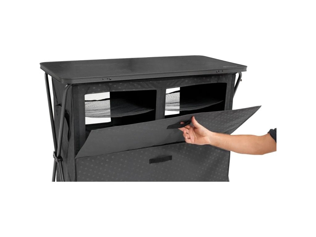 Outwell Aruba je všestranná kempingová skříňka se čtyřmi oddělenými úložnými boxy a celkem šesti přihrádkami pro ukládání věcí.Parametry: