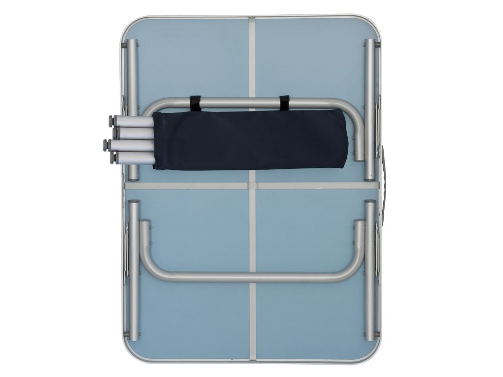 Díky promyšlenému designu lze nohy stolu po složení snadno uložit do pytlíku umístěného pod pracovní deskou, což značně usnadňuje přenášení a skladování. Kempingový stůl Avignon je tak kompaktní a lehký, že ho snadno sbalíte do auta nebo úložného prostoru, aniž by zabíral příliš mnoho místa. Po složení se stůl vejde do rozměrů 82 × 62 × 4 cm, což je ideální pro uložení ve stísněných prostorech nebo při cestování na kempování, výlety nebo jiné outdoorové aktivity.