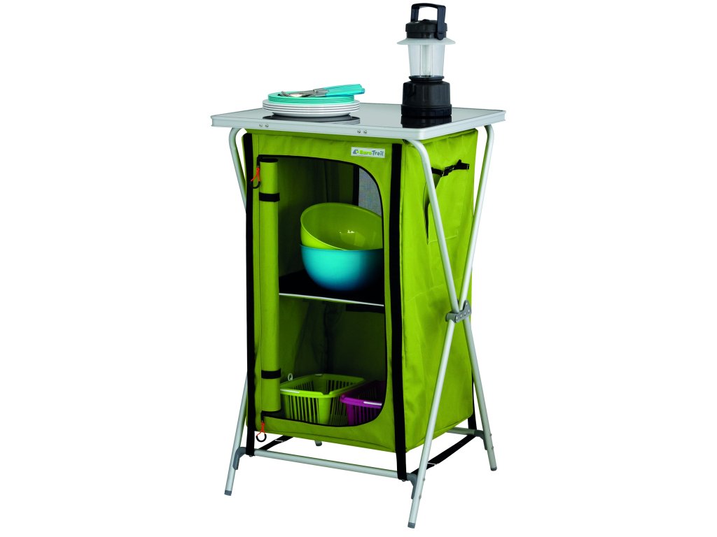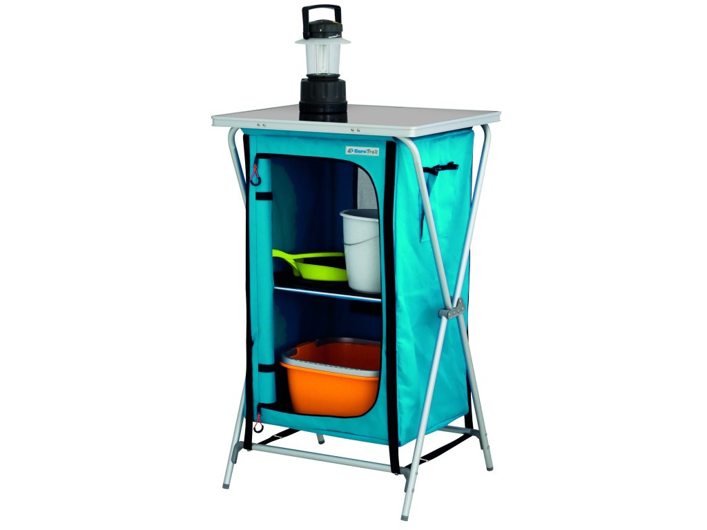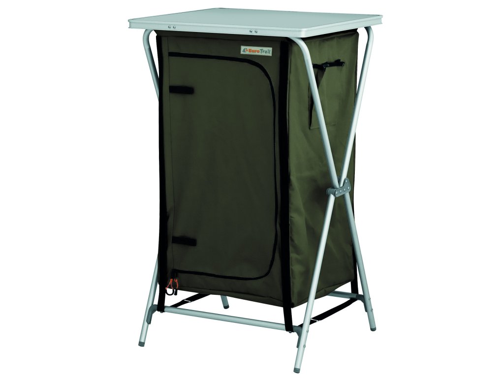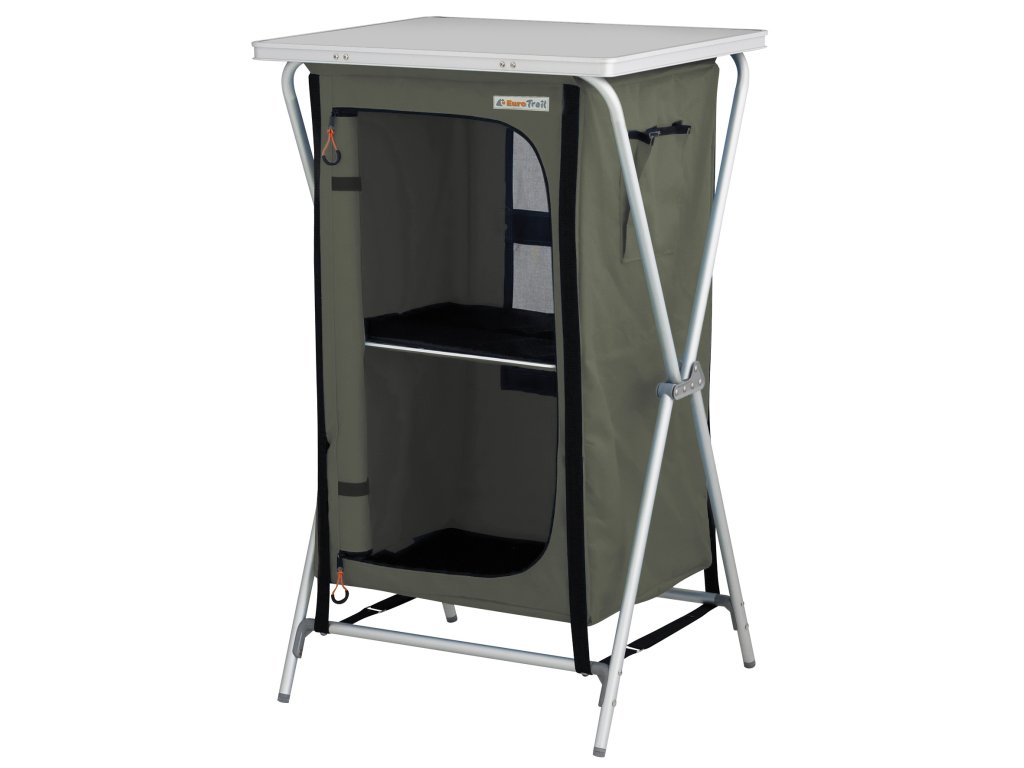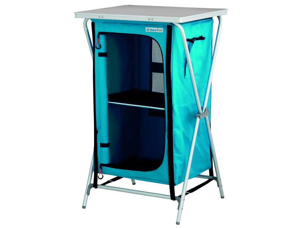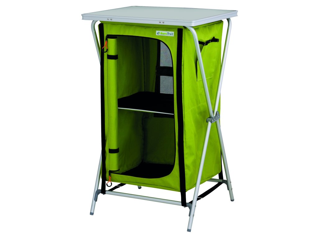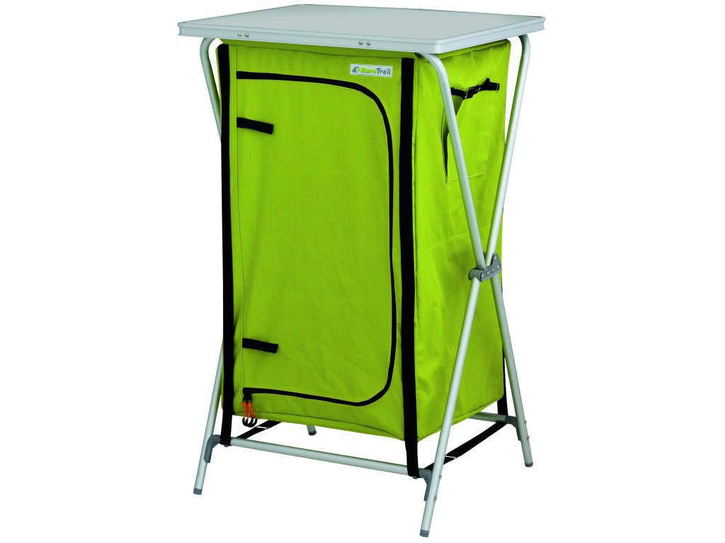 Tato kempingová skříňka nabízí praktický systém úložných prostor, který se skládá z dostatečně vysokých polic, které pojmou i vyšší věci, jako jsou nádoby, potraviny nebo oblečení. Dvířka skříňky jsou uzavíratelná zipem, což vám poskytne bezpečný způsob, jak chránit vaše věci před prachem a nečistotami. Díky síťce na zadní straně skříňky je zajištěna dobrá cirkulace vzduchu, což pomáhá udržovat věci v suchu a svěží.
