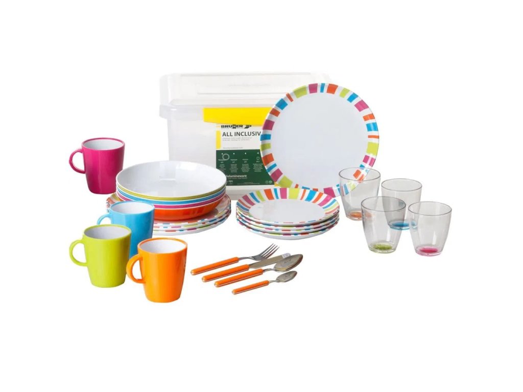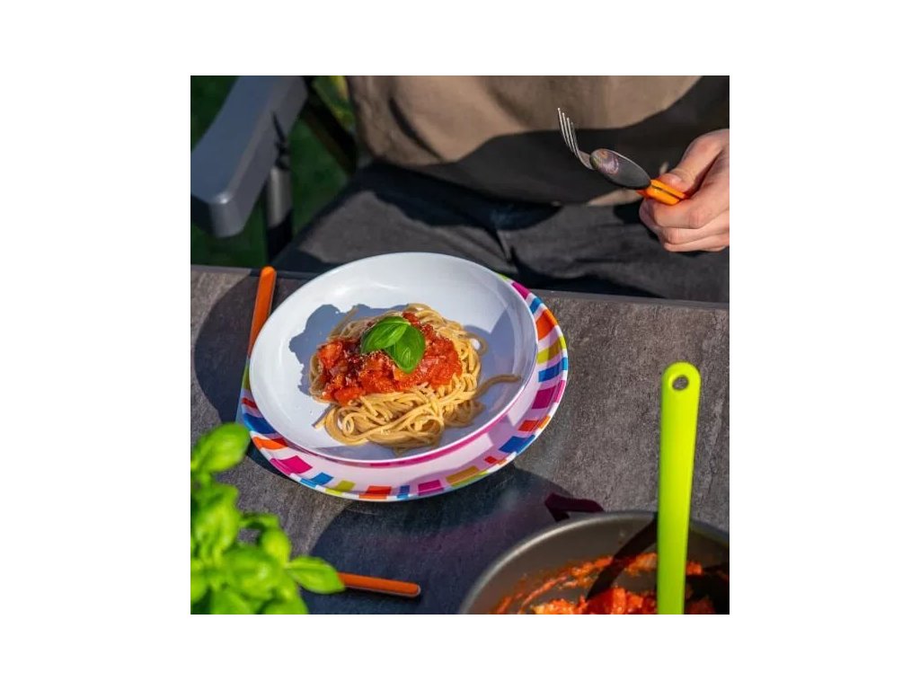 Melaminovou sadu nádobí Brunner Spectrum žádný náraz jen tak nerozhodí. Veselý design a extrémně kvalitní materiál jsou důvodem její oblíbenosti mezi karavanisty.Parametry setu nádobí Brunner Spectrum: