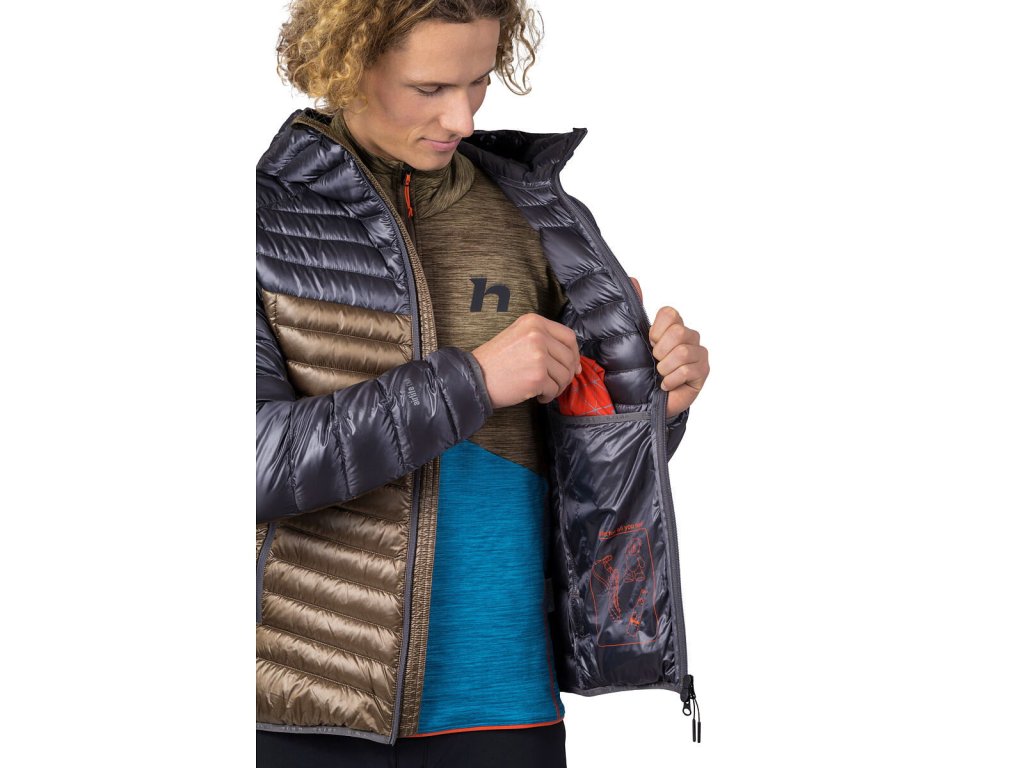 Objevuj, posouvej, překonávej hranice. Všechno dokážeš s lehkou zateplovací péřovou bundou Hannah Arden. Na první pohled zaujme zajímavým vzhledem struktury materiálu a prošitím. Je vyrobená z materiálu s vysokou hustotou tkaní Airlite DMF s vodoodpudivou úpravou a je komorově plněná kachním peřím s certifikací Bluesign. Bunda má proto široké možnosti využití, přes vysokohorskou turistiku, ferraty, trekking a ostatní aktivní sporty, až po cestování.
