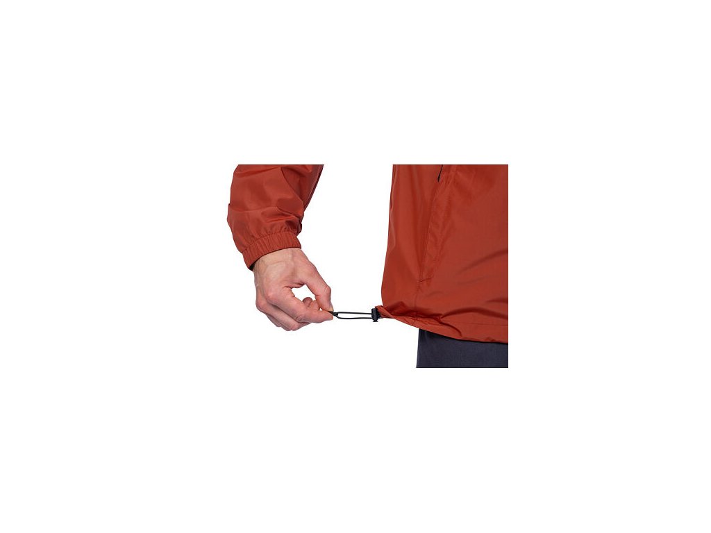 Přinechaná kapuce stažená do gumy, anatomicky tvarované rukávy jsou zakončené též do gumy. Spodní kraj lze jednoduše regulovat stahováním.