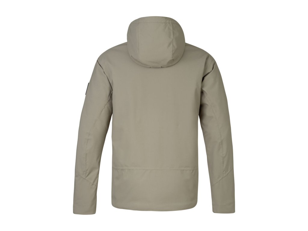 Bunda má kapuci s regulací, dvě hlavní a jednu hrudní kapsu s voděodolnými zipy. Celkovou nepromokavou vlastnost bundy doplňuje i voděodolný hlavní zip. Rukávy lze přizpůsobit stahováním na patku s drukem, tak jako spodní kraj bundy. Naši designeři vsadili na komfortní střih a jednobarevný design.